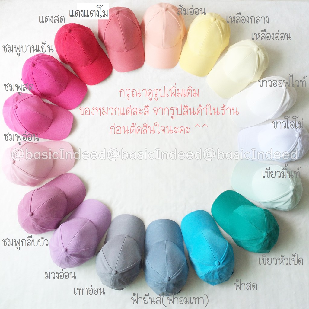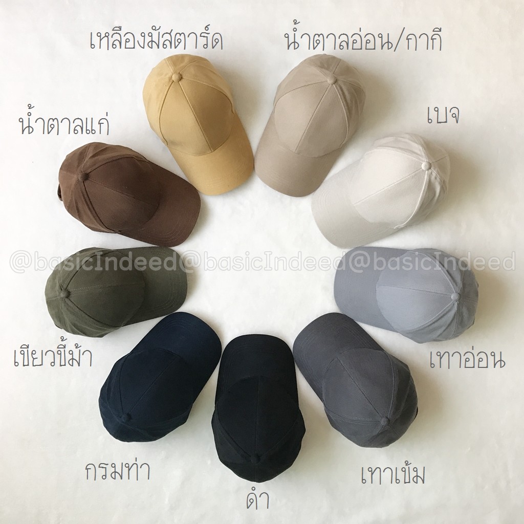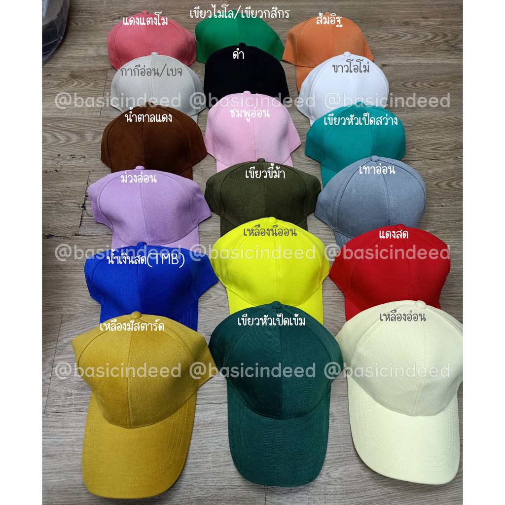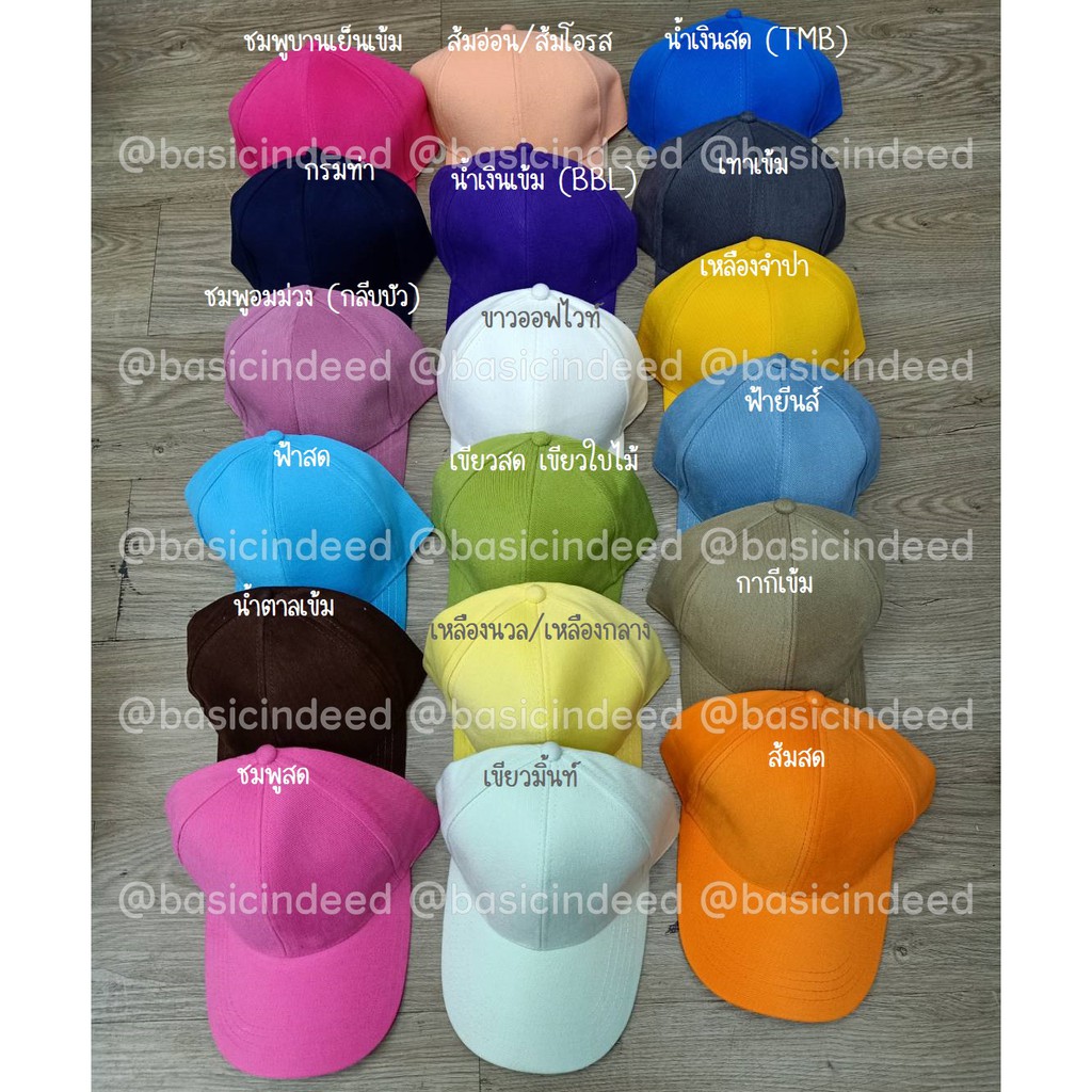 Basic Indeed หมวกแก๊ปสีพื้น หมวกเบสบอล ปรับขนาดแบบรางเลื่อน งานไทย ทรงสวย สีเยอะ ออกใบกำกับภาษีได้