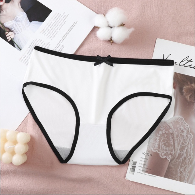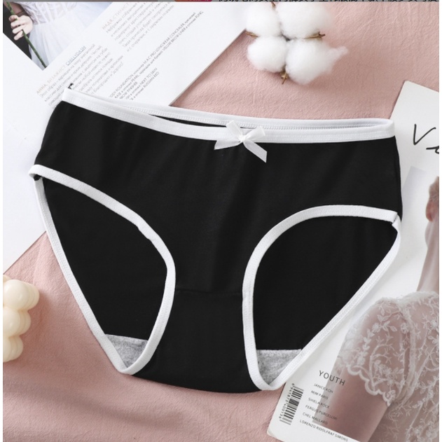A11 กางเกงในผ้าฝ้าย กางเกงใน กางเกงในน่ารัก แต่งโบว์และขอบสีดำ สุดปัง ใส่ง่ายได้ทุกโอกาส