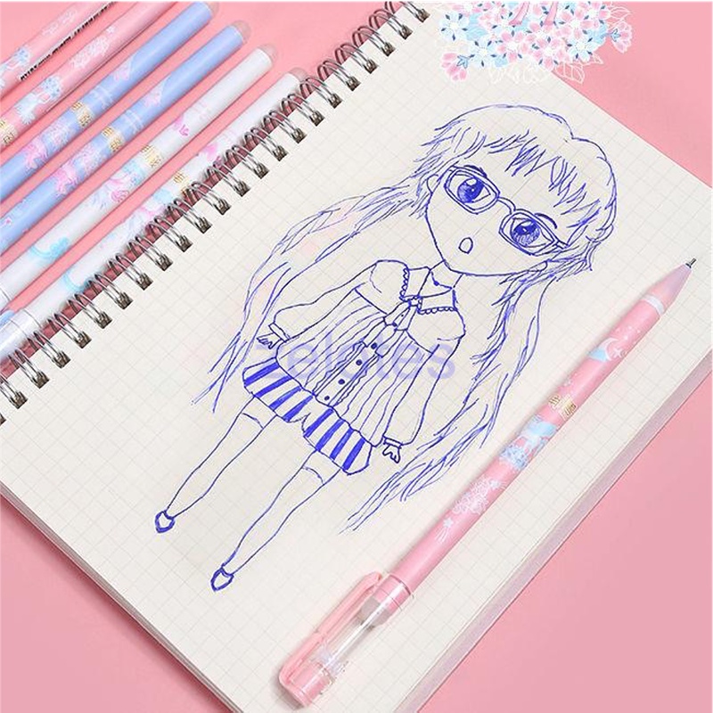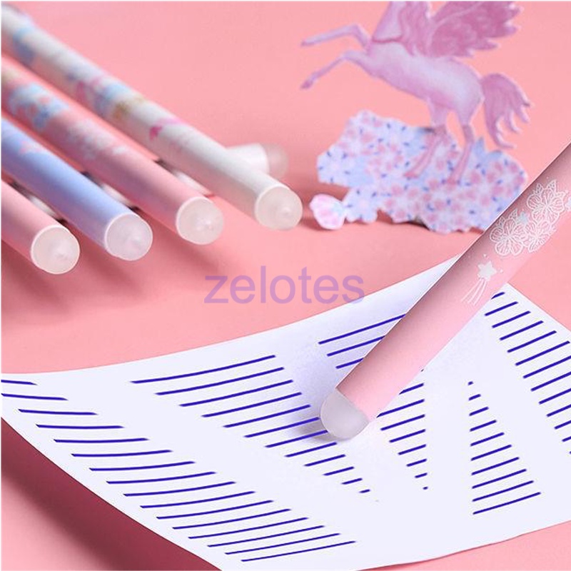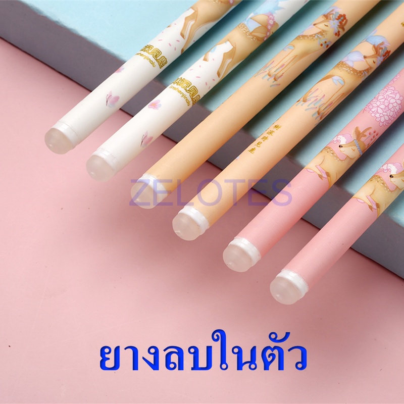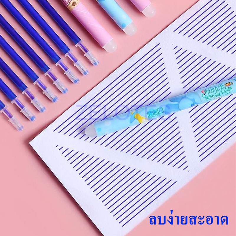 ปากกาลบได้ ลายการ์ตูน ยางลบในตัว หมึกสีน้ำเงิน หัวปากกา0.38-0.5mm (ราคาต่อ1กล่อง/12ด้าน)#ปากกาเจลลบได้
