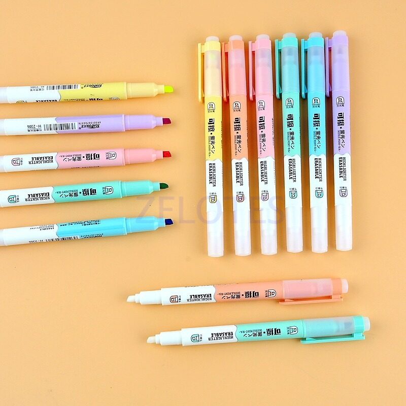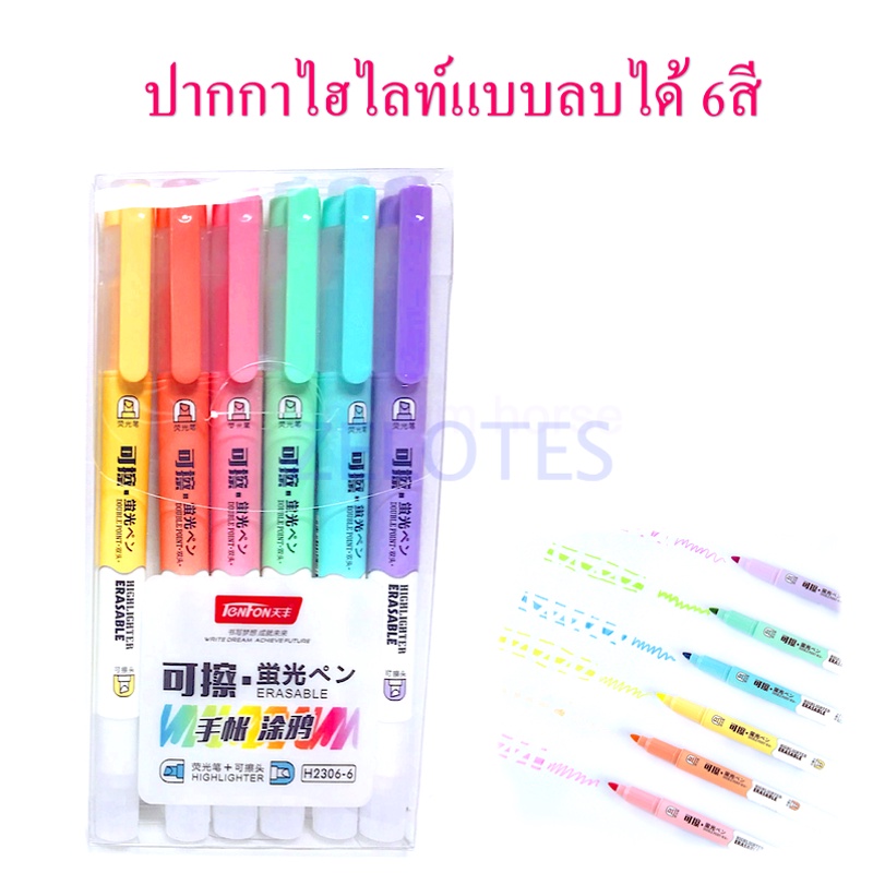 ปากกาไฮไลท์แบบลบได้ 6สี tenfon รุ่นH-2306 สีชัดแบบสว่าติดทนทาน สีไม่ซีดจางหรือคล้ำลง ตัวด้ามทรง แบบแพ็ค(ราคาต่อชุด)