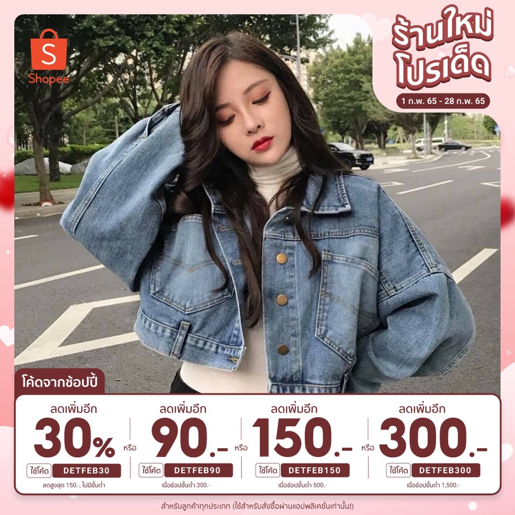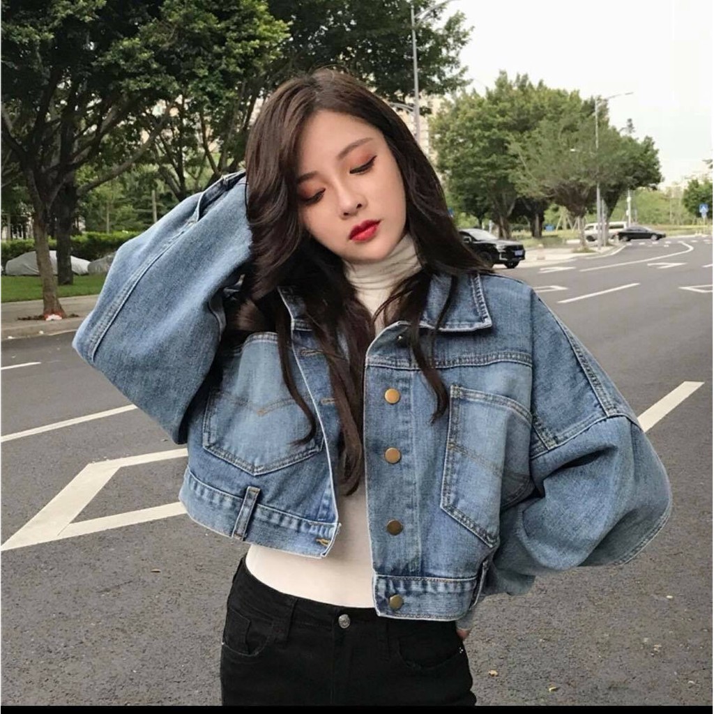 [เหลือ 132.- เก็บโค้ดหน้าร้าน+DETFEB30] แจ็คเก็ตยีนส์ แขนยาว แขนทรงปีกค้างคาวสไตล์เกาหลี พร้อมส่ง