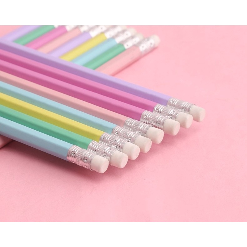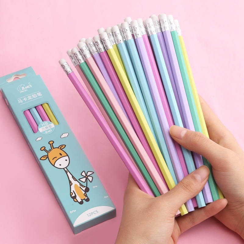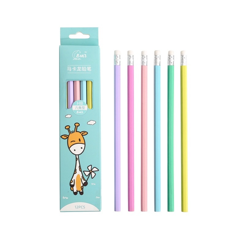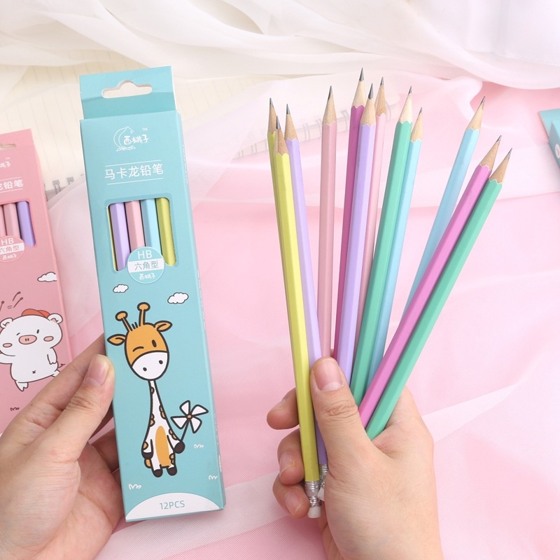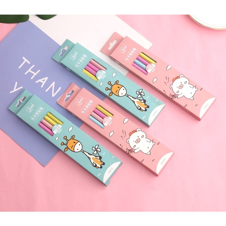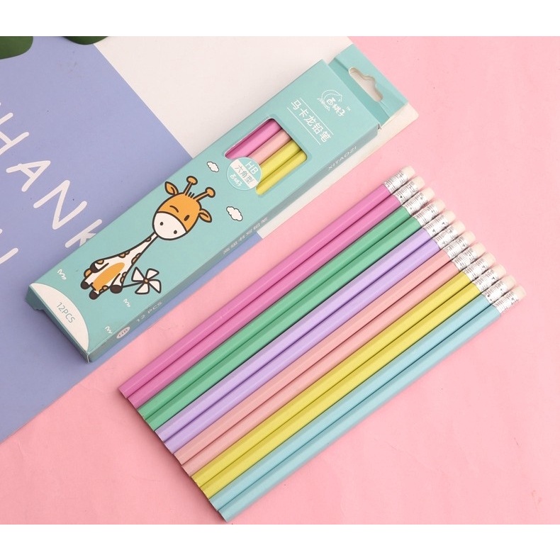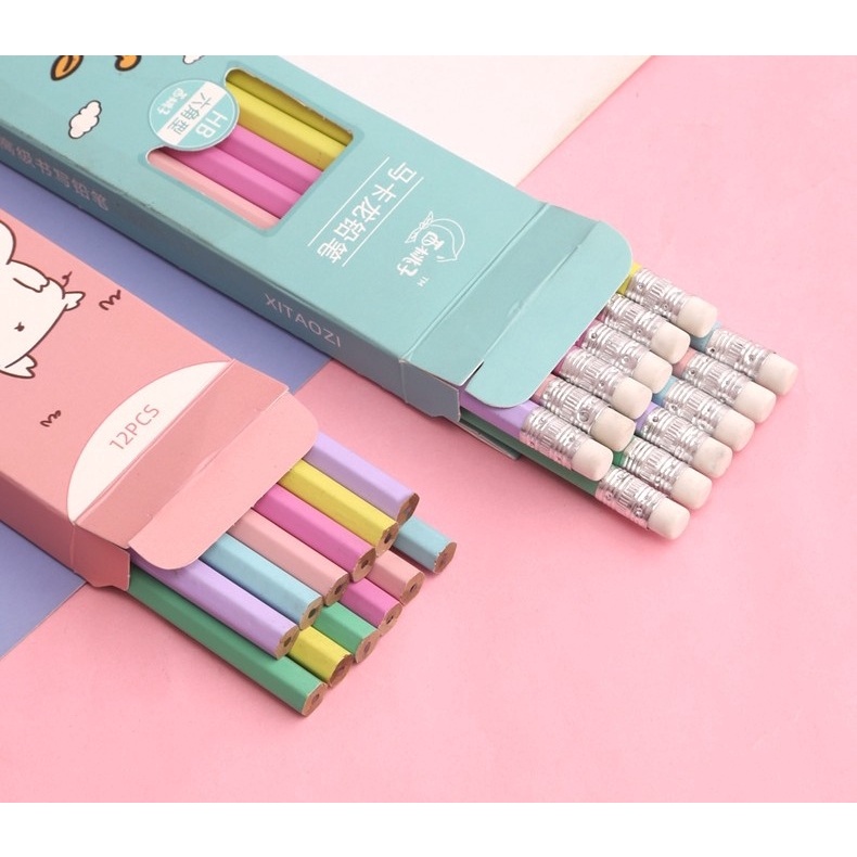 ดินสอไม้ HB พร้อมยางลบ 12 ด้าม/แพ็ก กล่องการ์ตูนสุดน่ารัก ดินสอ เครื่องเขียน อุปกรณ์การเรียน