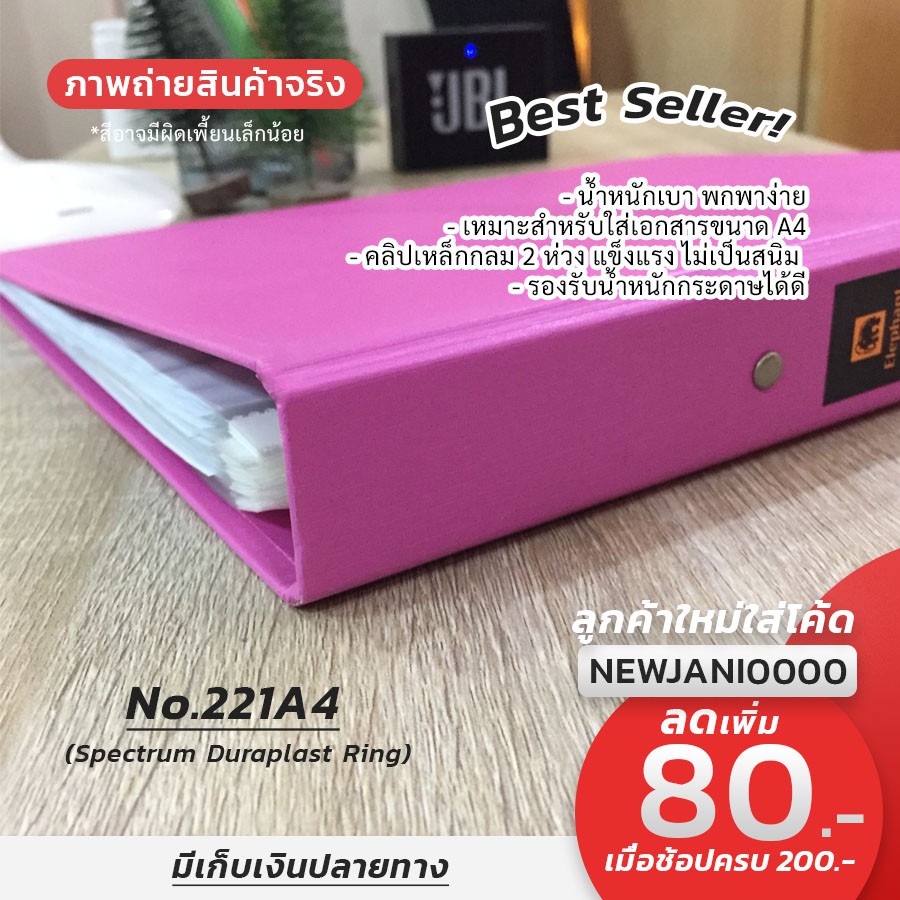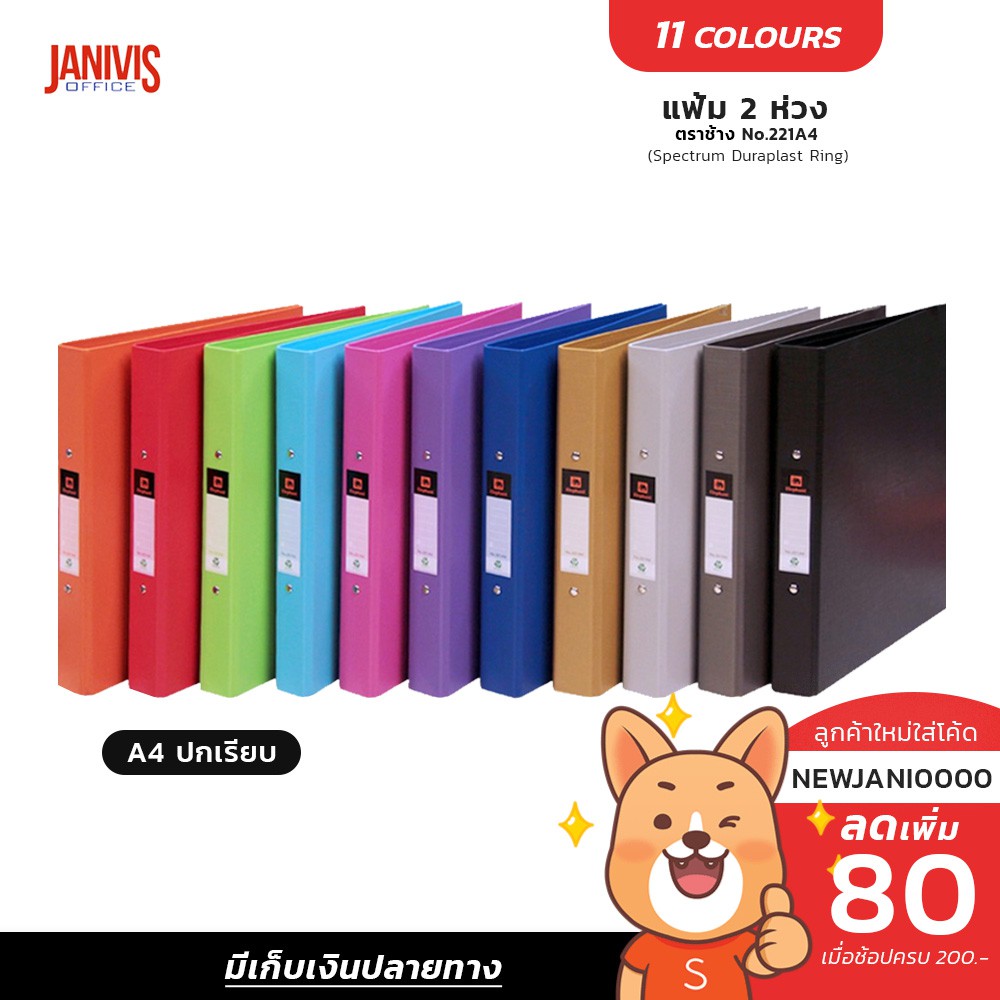 แฟ้ม 2 ห่วง A4 ตราช้าง No.221 VB A4 ปกเรียบ ห่วงแข็งแรง ไม่หลุดง่าย (มีให้เลือก 11 สี)