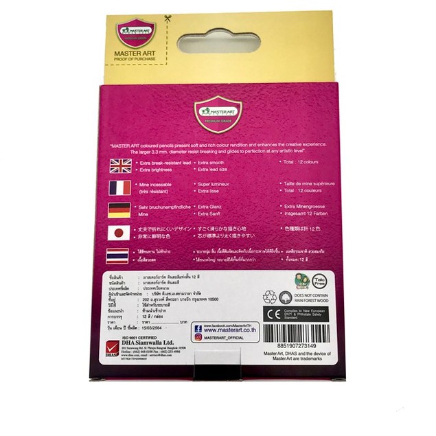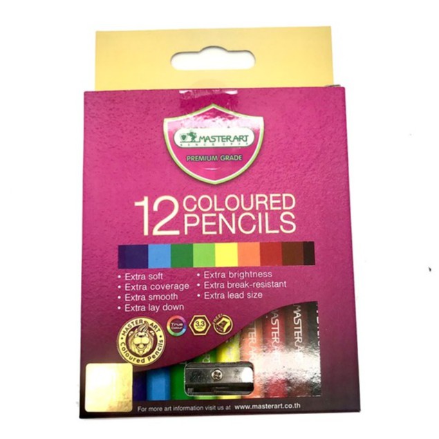 MASTERARTสีไม้ มาสเตอร์อาร์ต แท่งสั้น (กล่อง12สี)ไส้สีสูตรใหม่ ไส้ใหญ่พิเศษขนาด 3.3มม