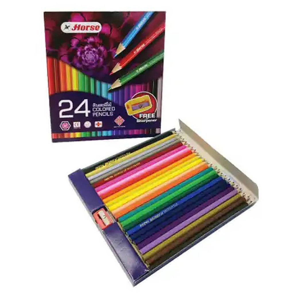 สีไม้ยาวแท่งเหลี่ยม ตราม้า 24 สี 24 แท่ง+กบเหลา รุ่นใหม่สีสะท้อนแสง