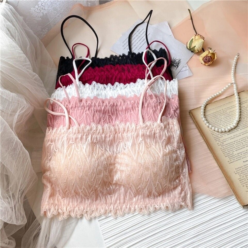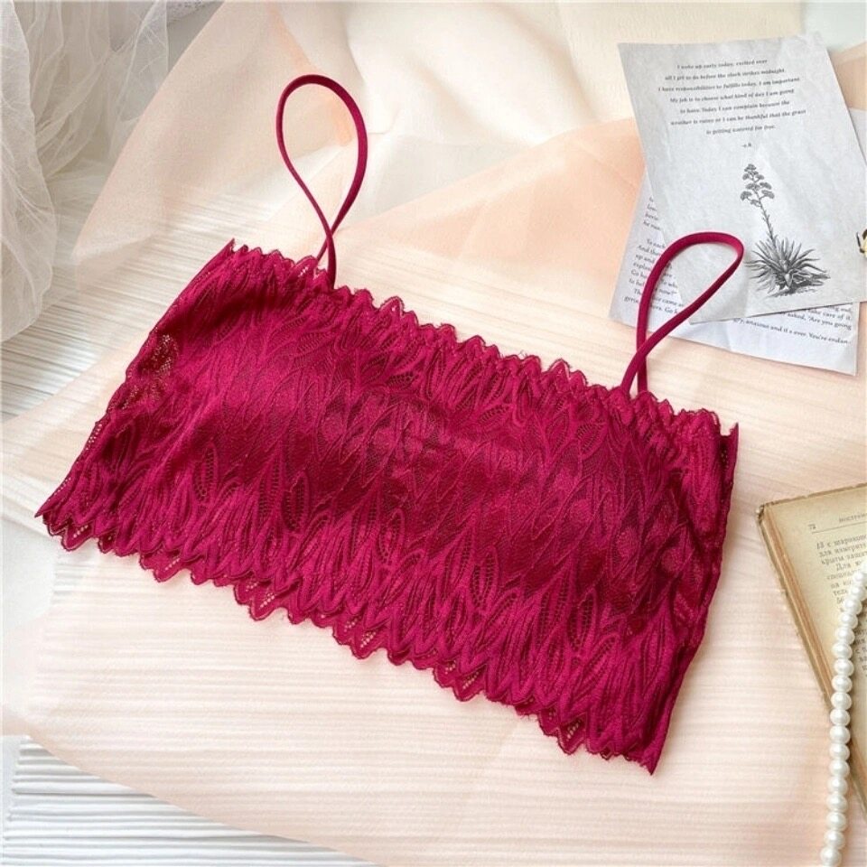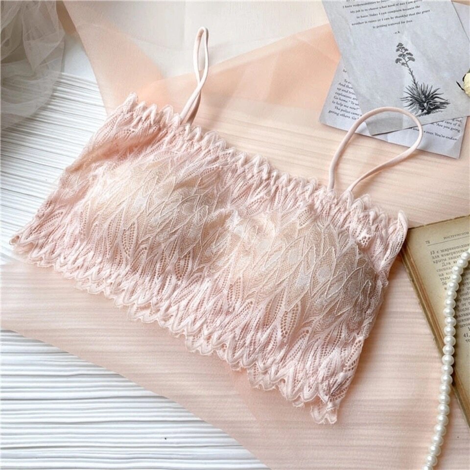 เกาะอก เสื้อชั้นใน ผู้หญิง ไร้โครง สายยางยืดผ้าลูกไม้ ฟองน้ำถอดได้