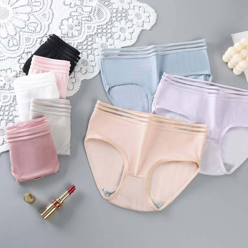 brabra กางเกงในผู้หญิง กางเกงในเอวต่ำ แต่งขอบเอวผ้าแก้ว หลากสี พร้อมส่งในไทย