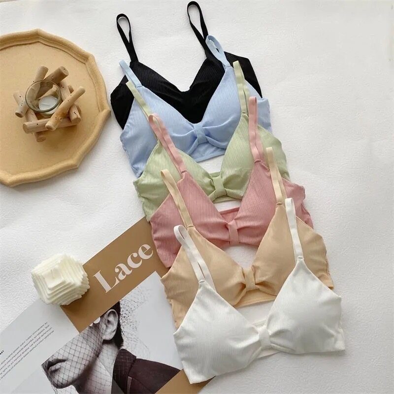 brabra บราไร้โครง เสื้อชั้นใน แบบสวม ชุดชั้นใน ผ้านิ่ม ฟองน้ำในตัว สายปรับได้ ดีไซน์โบว