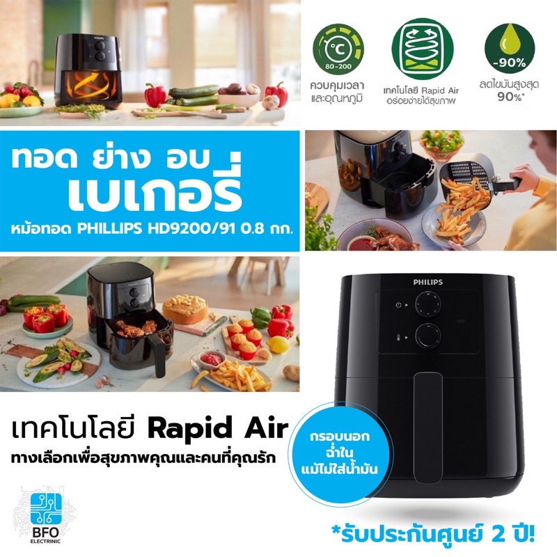 Philips AirFryer หม้อทอดอากาศฟิลิปส์ HD9200/91 (รับประกันศูนย์ 2 ปี)