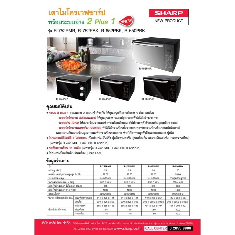 SHARP เตาไมโครเวฟ 2plus1 ระบบย่างได้ รุ่นR-652PBK ความจุ 20 ลิตร (รับประกันศูนย์ 1 ปี)