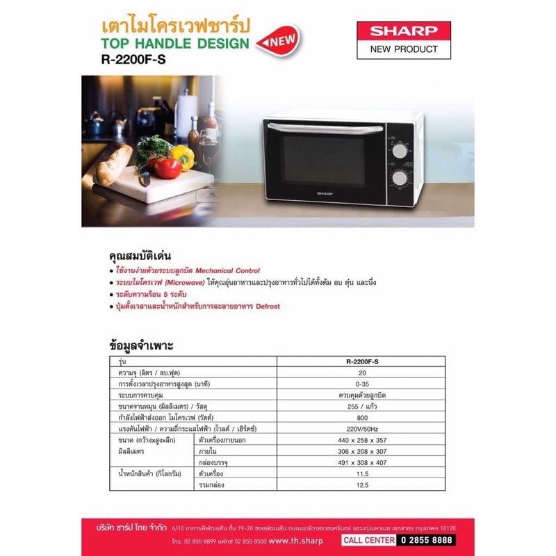 SHARP ไมโครเวฟ (20 ลิตร) รุ่น R-2200F-S รับประกันศูนย์