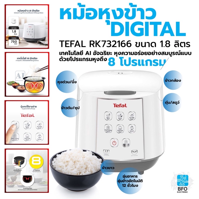 Tefal หม้อหุงข้าวไฟฟ้า กำลังไฟ 750 วัตต์ ความจุ 1.8 ลิตร รุ่น RK732166 -White รับประกันศูนย์