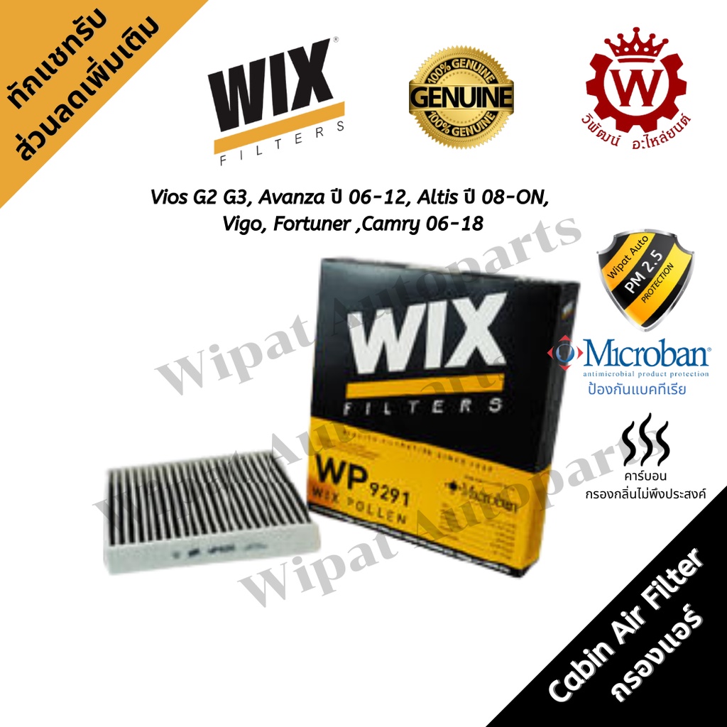 Wix กรองแอร์คาร์บอน Toyota Vios Avanza ปี 06-11 Altis Vigo Fortuner Camry Yaris ยาริช Veloz