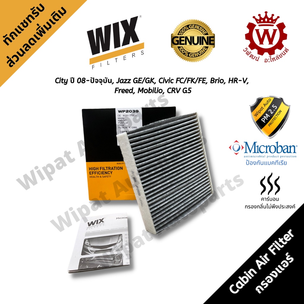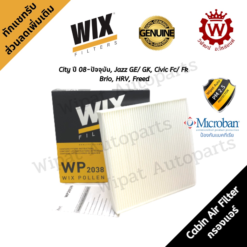 Wix กรองแอร์ กรองฝุ่น PM2.5 Honda City ซิตี้ ปี 08-ปัจจุบัน, Jazz แจ๊ส GE/ GK, Civic Fc/ Fk/FE, HRV