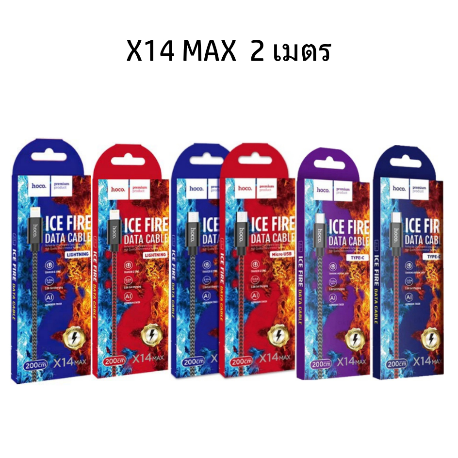 HOCO X14 MAX สายชาร์จถัก ชาร์จดี จ่ายไฟเต็ม 3A ยาว1-2 ม. สำหรับ iOS / Micro / Type C สายชาร์จ hc1