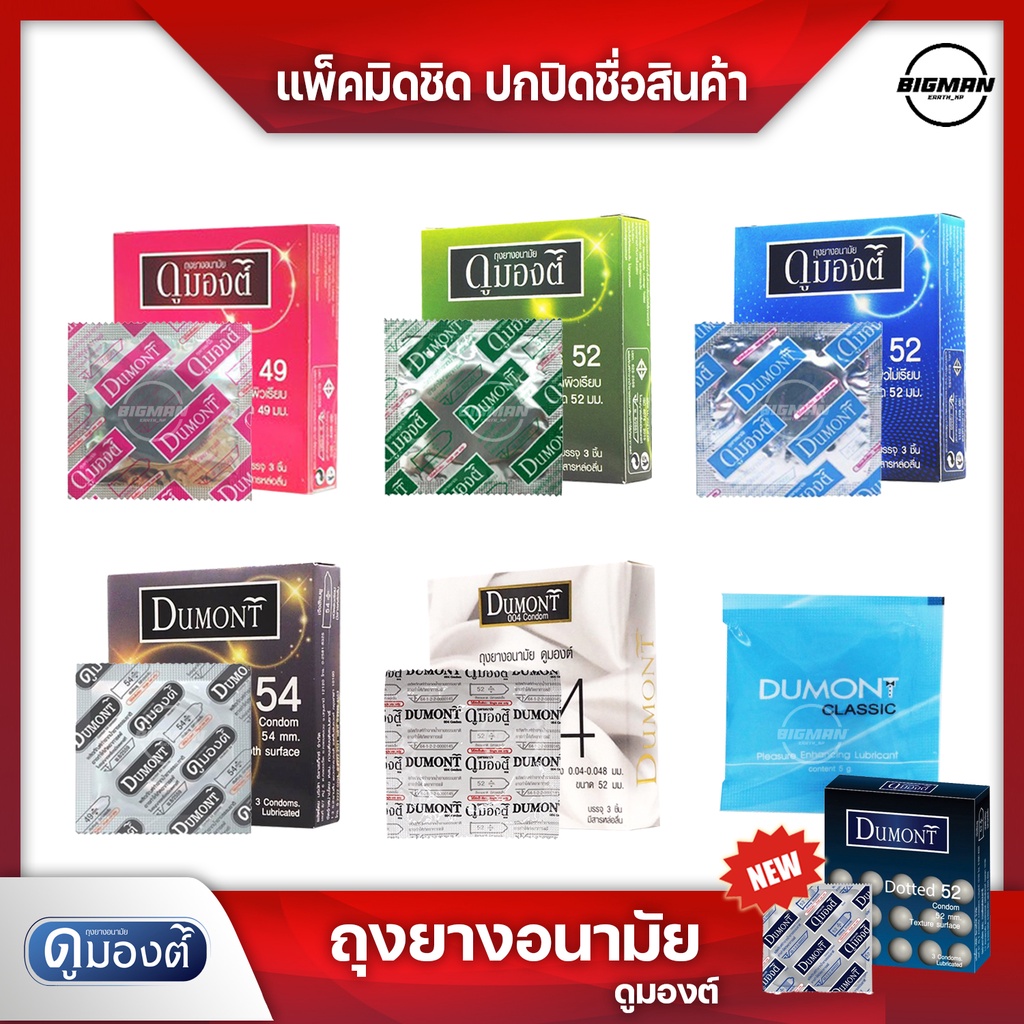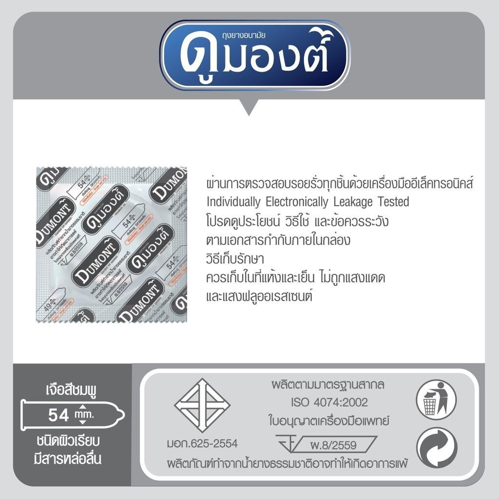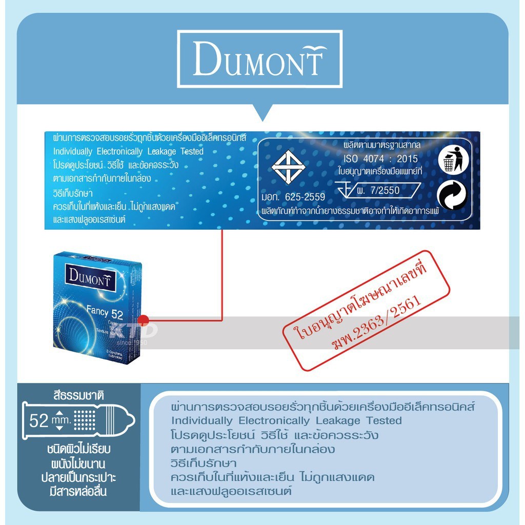 Dumont Condom " ถุงยางอนามัย ดูมองต์ " รุ่น basic , comfy , comfort , fancy , 004 ขนาด 49 , 52 , 54 มม. และเจลหล่อลื่น