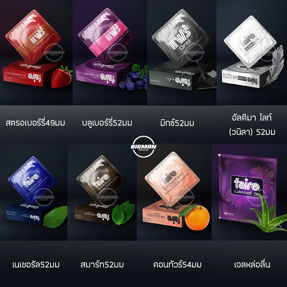 ถุงยางอนามัยแฟร์ ขนาด 49 - 54 มม. (FAIRE CONDOM) และเจลหล่อลื่นแฟร์