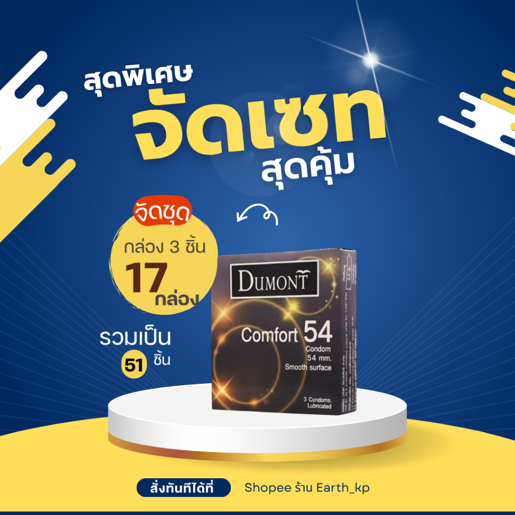 ถุงยางอนามัย Dumont Comfort ขนาด54 แบ่งขาย 15 - 60 ชิ้น ดูมองต์ คอมฟอร์ท