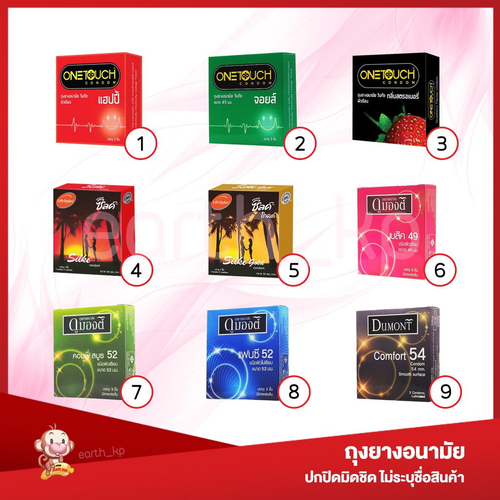 ถุงยางอนามัยรวมรุ่น 49-54 มม. (1กล่องบรรจุ3ชิ้น) วันทัช / ไลฟ์สไตล์ / ดูมองต์ Onetouch / LifeStyles Silke / Dumont