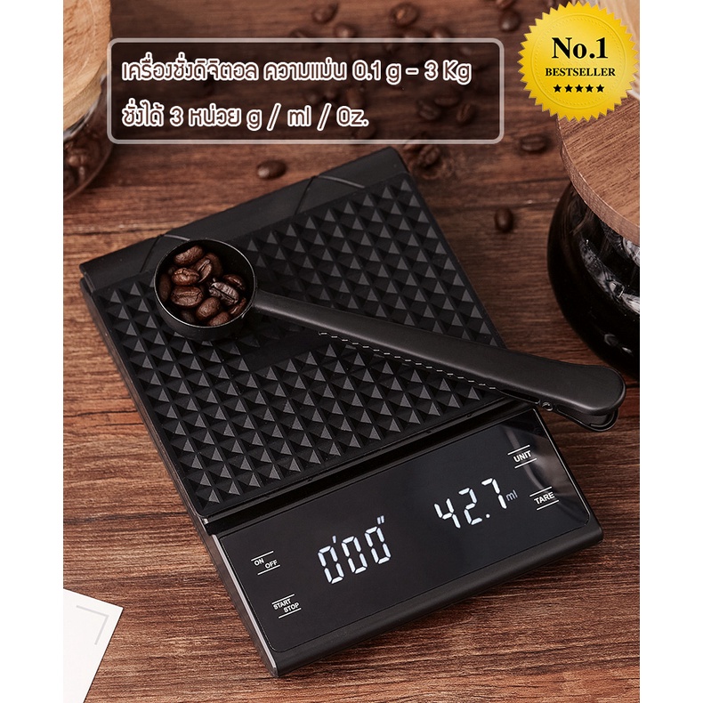 เครื่อง ชั่งน้ำหนักอาหาร เครื่องชั่งกาแฟ ตาชั่งกาแฟ มีฟังชั่นชดเชยน้ำหนัก พร้อมส่งในไทย 0.1g-3000g
