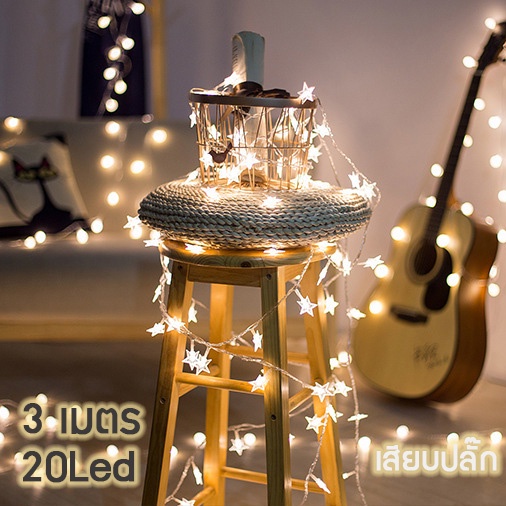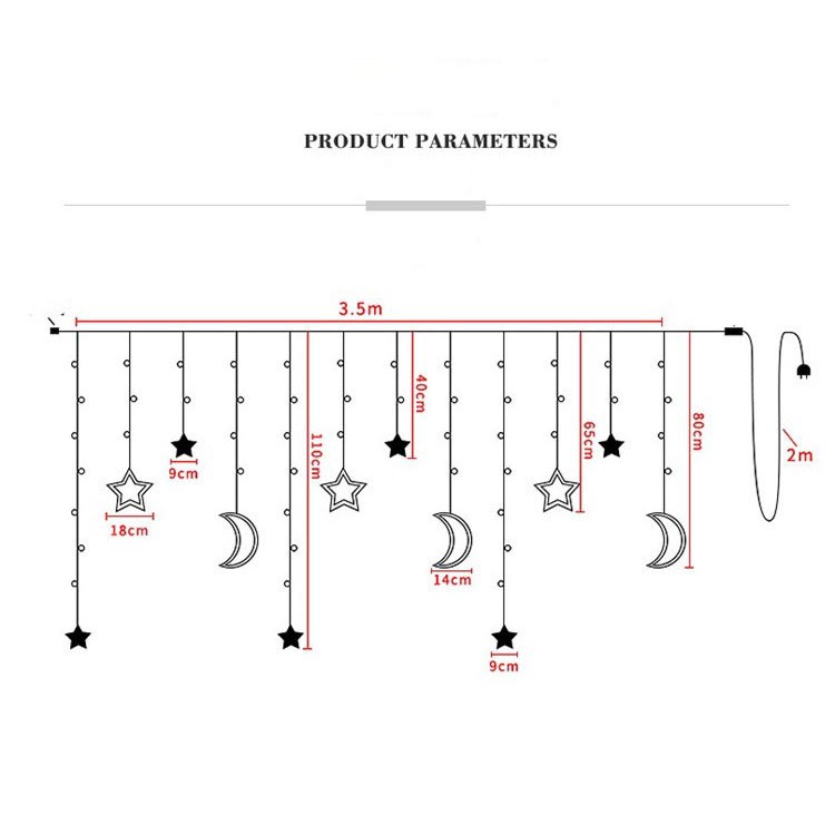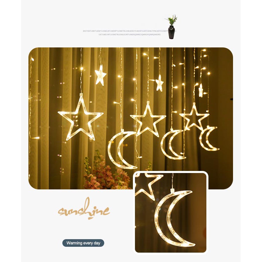 Star&Moon ไฟแต่งห้อง ไฟม่านดาว+พระจันทร์ ไฟประดับ กว้าง 3.5เมตร(3Moon,6Star)