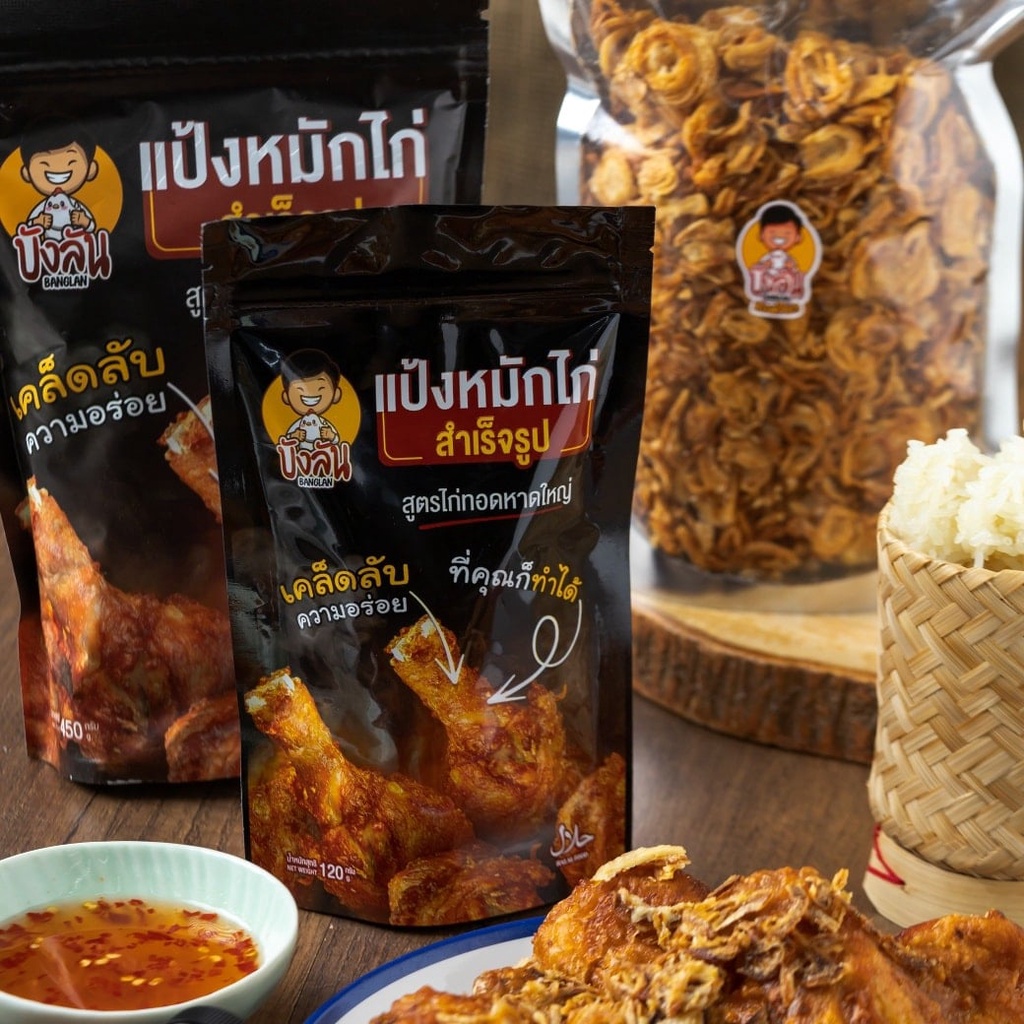 แป้งหมักไก่สำเร็จรูป บังลัน สูตรไก่ทอดหาดใหญ่ 1 ถุง น้ำจิ้ม 1 หอมเจียว 1