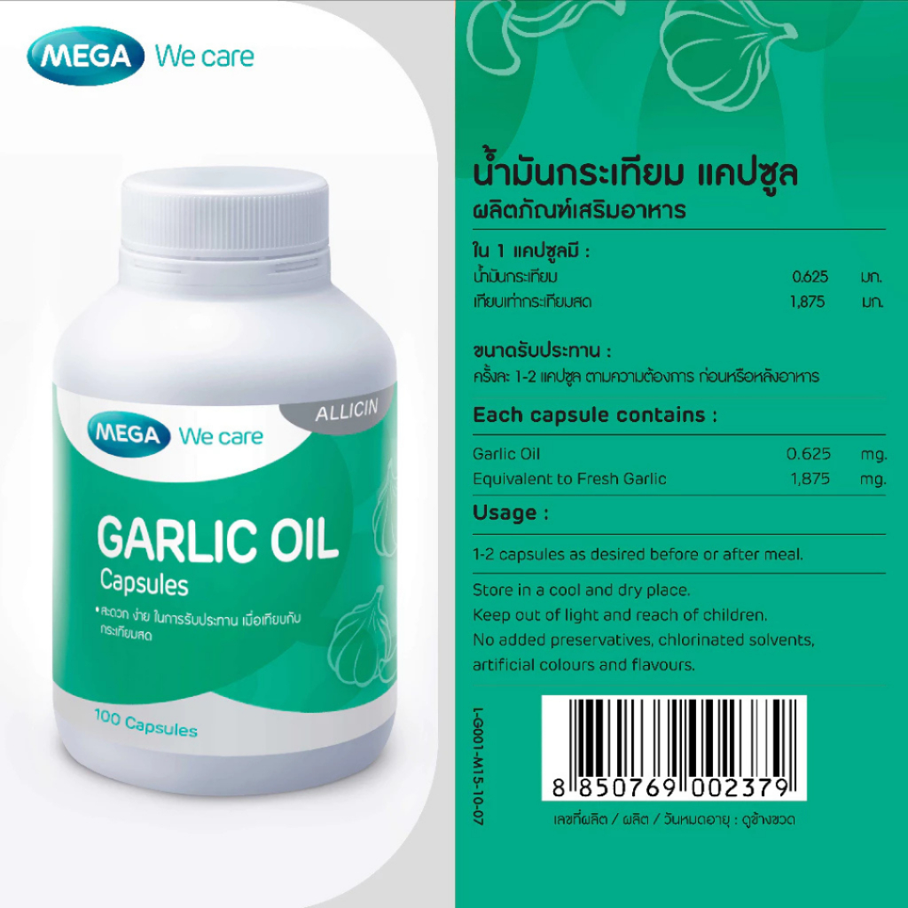 🚚ส่งไวมาก🚚 Mega We Care Garlic Oil น้ำมันกระเทียม การ์ลิค ออย (100 แคปซูล) #1937