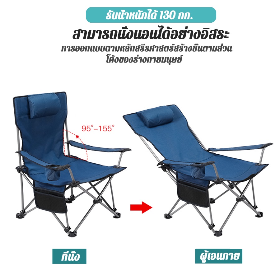 KOJIMA เก้าอี้สนาม เก้าอี้นอนพับได้ ปรับนอน แคมป์ปิ้ง ปรับเอนนอนได้ 150กก