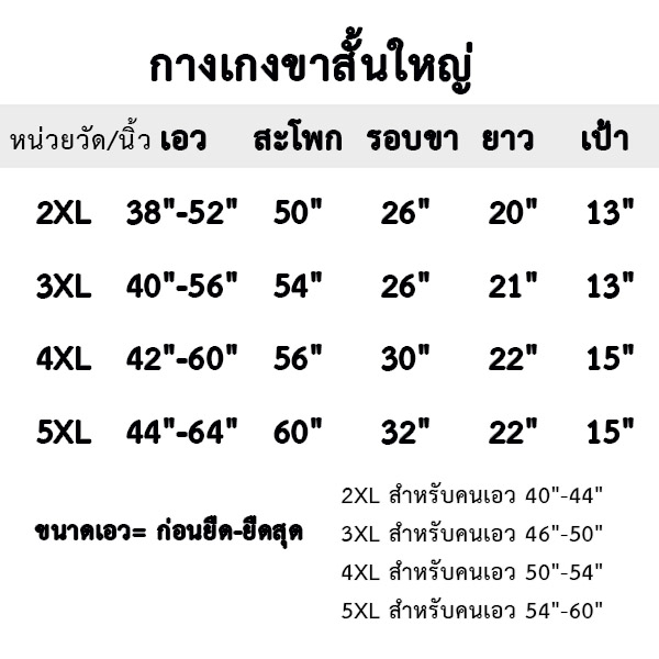 กางเกงไซส์ใหญ่ขาสั้น 2XL-5XL ใหญ่พิเศษสุดๆๆ เอวถึง 60นิ้ว กางเกงวอร์มขาสั้นคนอ้วน สวมใส่สบาย