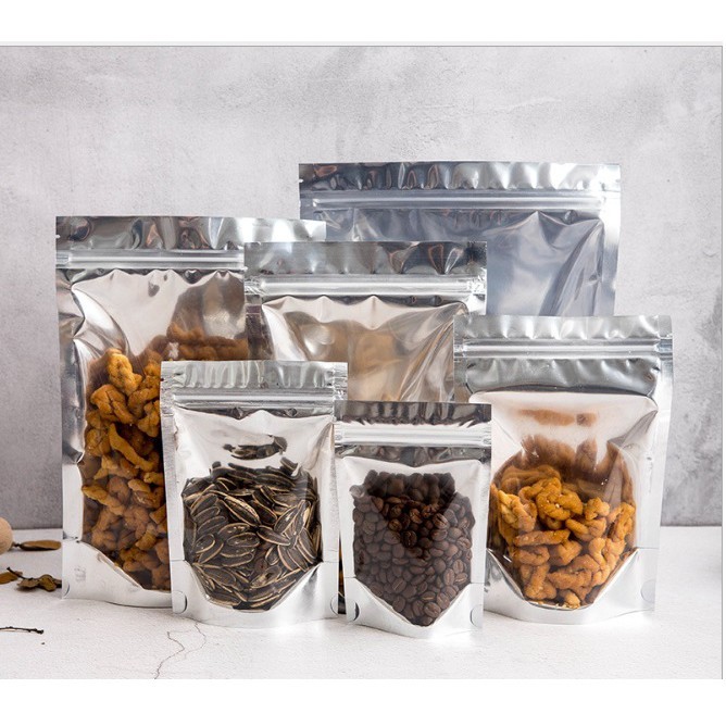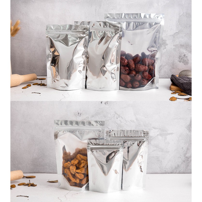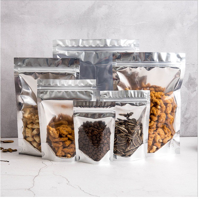 ถุงซิปหน้าใสหลังเงิน ล็อค ตั้งได้ ขนาดมาตรฐาน เก็บขนมและอาหารแห้งอย่างมีประสิทธิภาพ