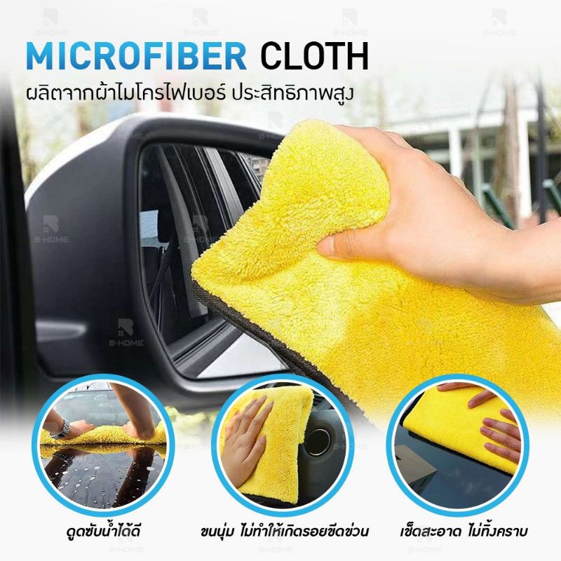 พร้อมส่ง💦ผ้าไมโครไฟเบอร์ ล้างรถ (สีเหลือง)