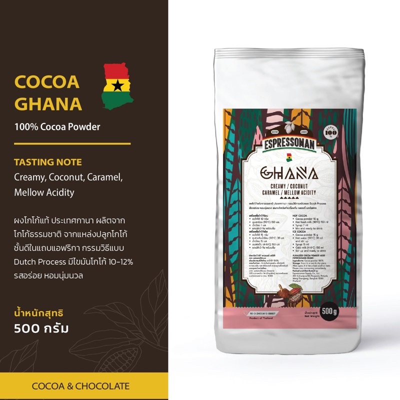COCOA GHANA 500G ผงโกโก้ กาน่า ขนาด 500 กรัม ตรา ESPRESSOMAN