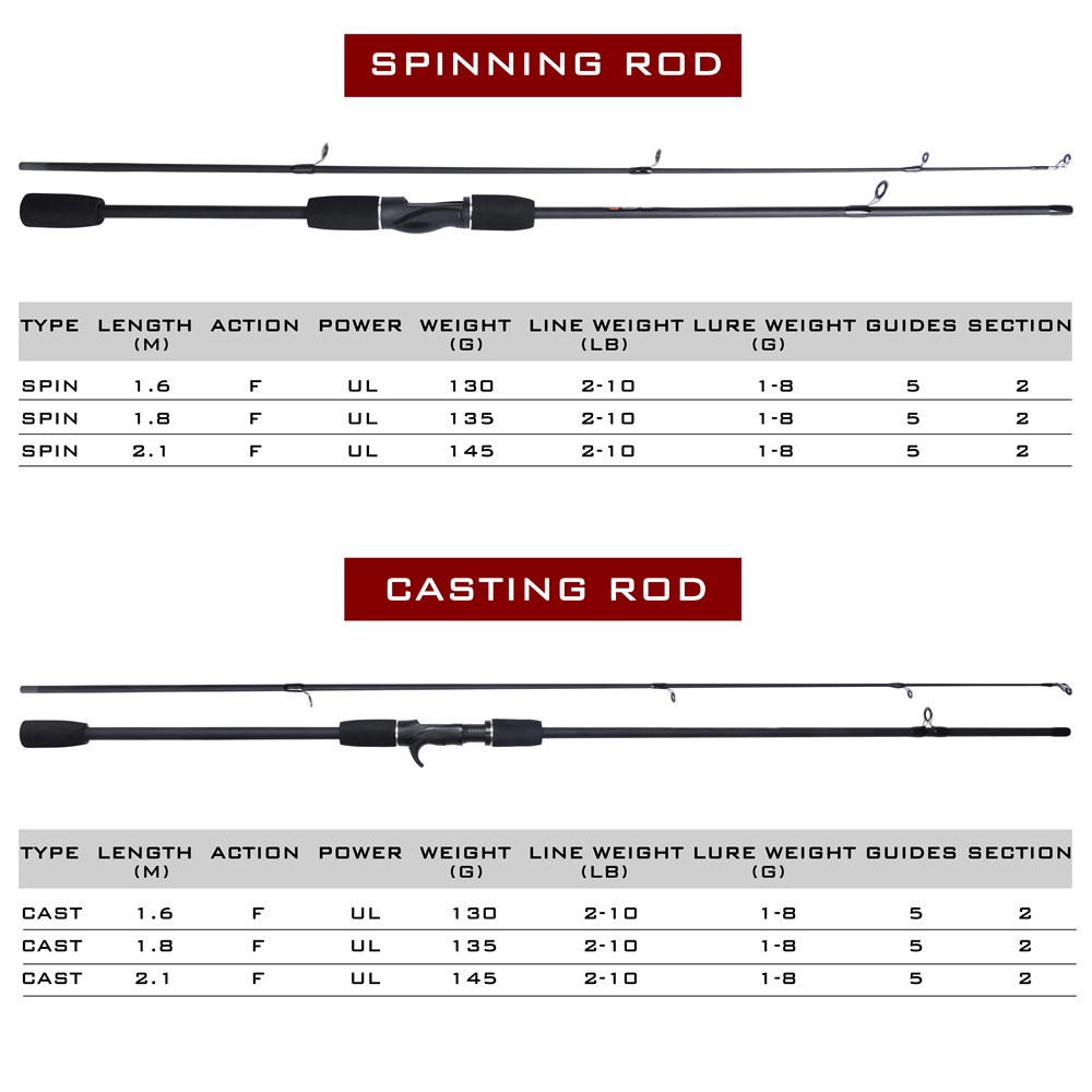 FRRTC คันเบ็ด คาร์บอนไฟเบอร์ 1.68 ม. 1.8 ม. คาร์บอนไฟเบอร์น้ำหนักเบาพิเศษคันเบ็ดสปินนิ่ง
