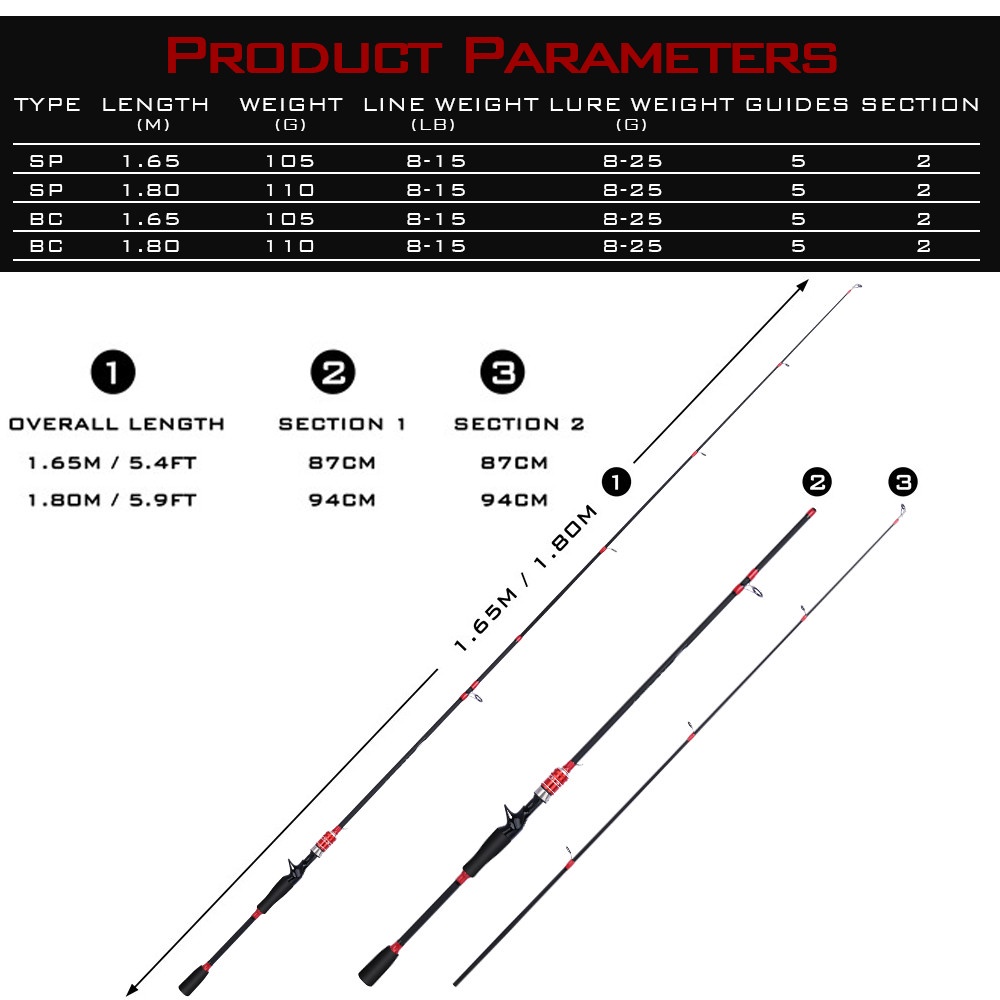 FRRTC คันเบ็ด 1.65m 1.8m คาร์บอนไฟเบอร์หล่อปั่นคันเบ็ดปั่นคันเบ็ดตกปลา