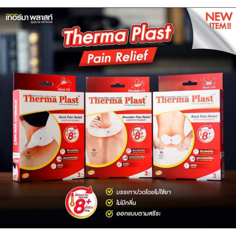 แผ่นประคบร้อน พลาสเตอร์แก้ปวด Therma Plast อุ่นสบาย คลายปวด แผ่นแปะแก้ปวด ออกฤทธิ์นาน 8 ชม.