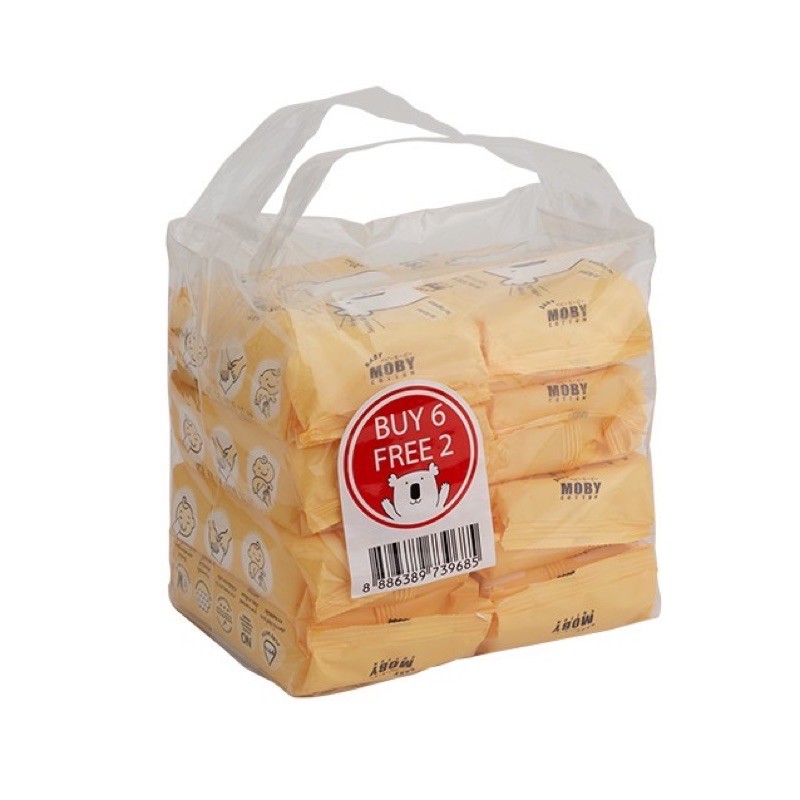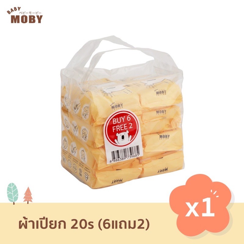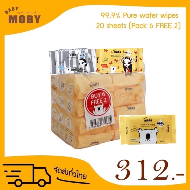 sale‼️ทิชชู่เปียก (แพ็ค 6 แถม 2) BabyMoby เบบี้โมบี้ ทิชชู่เด็ก ผ้าเช็ดทำความสะอาดสูตรน้ำบริสุทธิ์ 99.9% 20 แผ่น WIPES