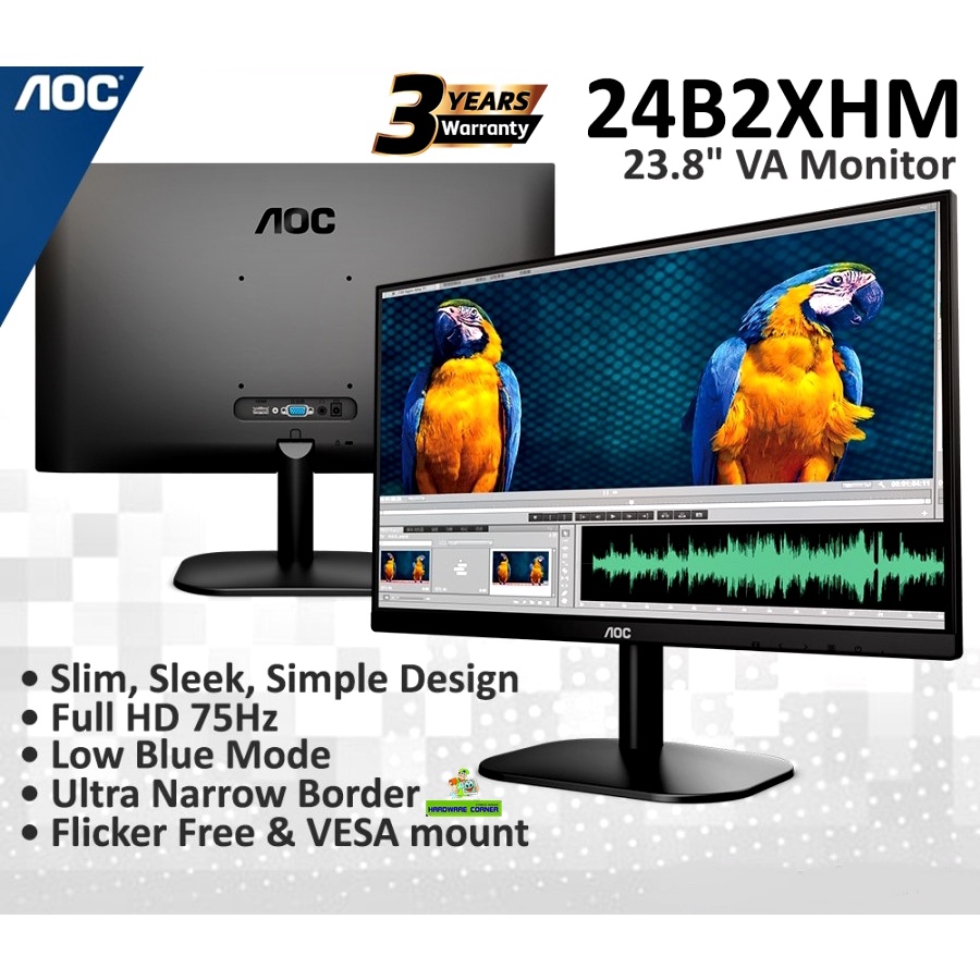 MONITOR (จอมอนิเตอร์) AOC 24B2XH/67 23.8" IPS FHD 75Hz Warranty 3 - Y รุ่นขายดี ยอดนิยม