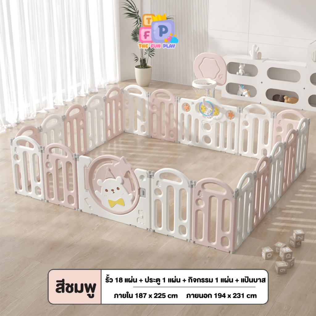 TheFunPlay คอกกั้นเด็ก พับได้ ปรับทรงได้ ปลอดภัย แข็งแรง สำหรับเด็กเล็ก