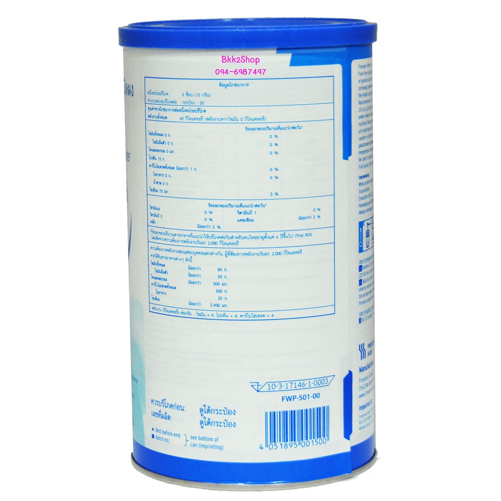 Fresubin Whey Protein Isolate เฟรซูบินเวย์โปรตีนไอโซเลต 300g (ผลิตภัณฑ์จากนม)เพิ่มกล้ามเนื้อและน้ำหนัก