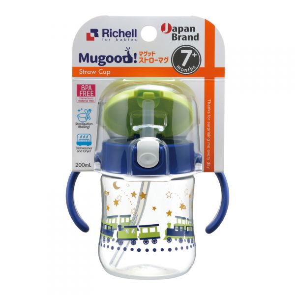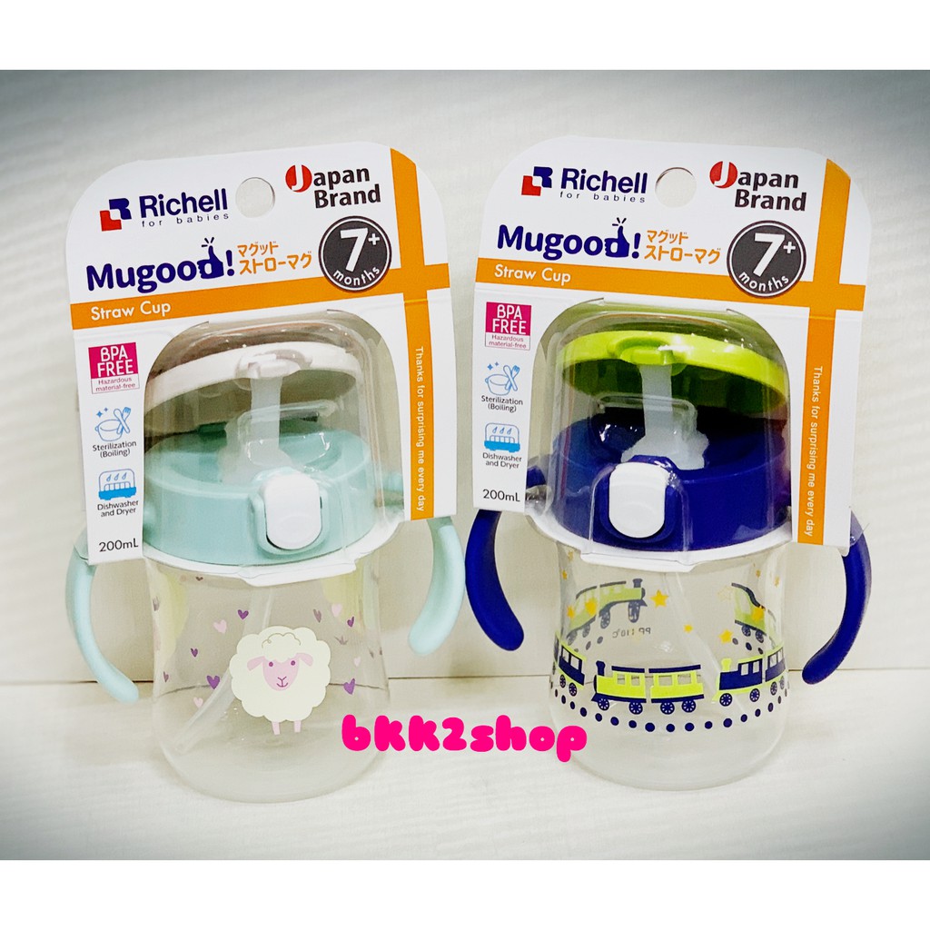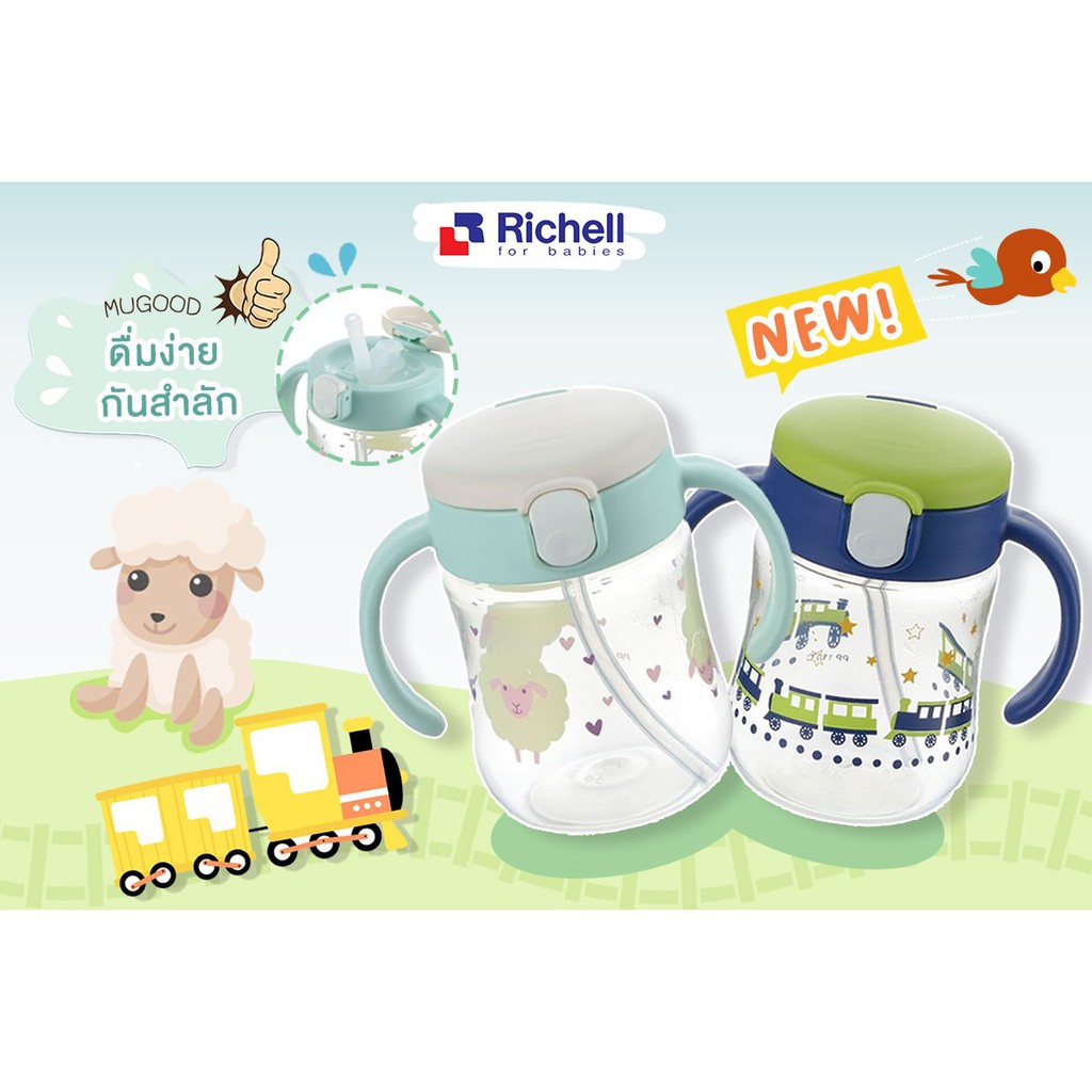 Richell แก้วหัดดื่มแบบหลอดดูด MUGOOD! 200มล. ลายสดใสน่ารัก