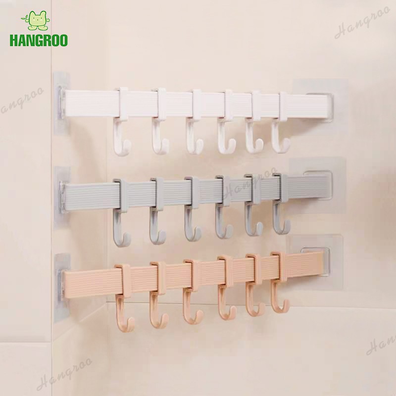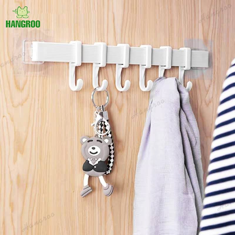 HANGROO H613 ราวแขวนของ ติดผนัง แบบ6ตะขอ ไม่ต้องเจาะรู ((ราคาต่อ 1 ชิ้น))