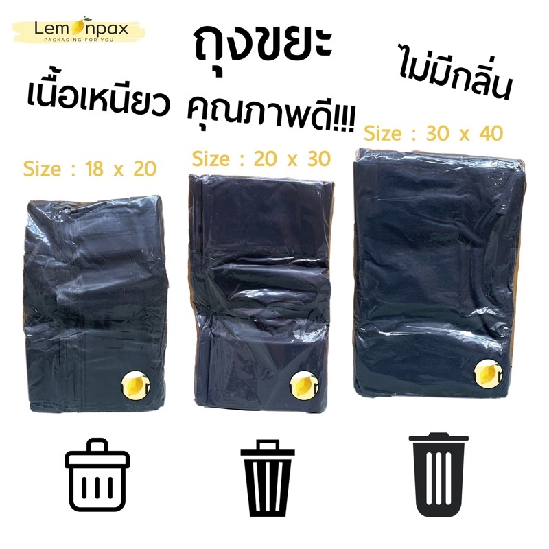 [ขายยกแพ็ค] ถุงขยะดำมี 3 ขนาด แพ็คละ 1 kg. เนื้อเหนียว คุณภาพดี ไม่มีกลิ่นฉุน