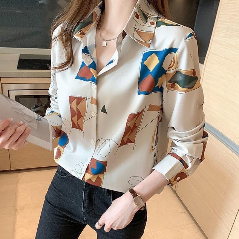 NEW ❗️ เชิ้ตสาวอวบ กราฟฟิกพิมพ์ลาย แฟชั่นเกาหลี