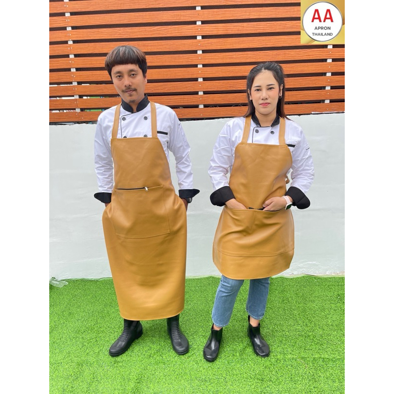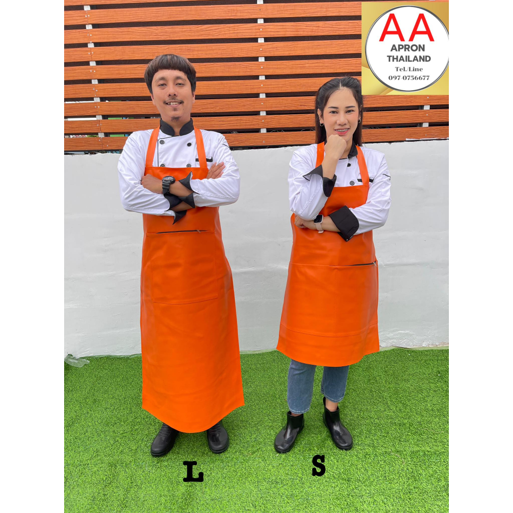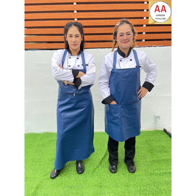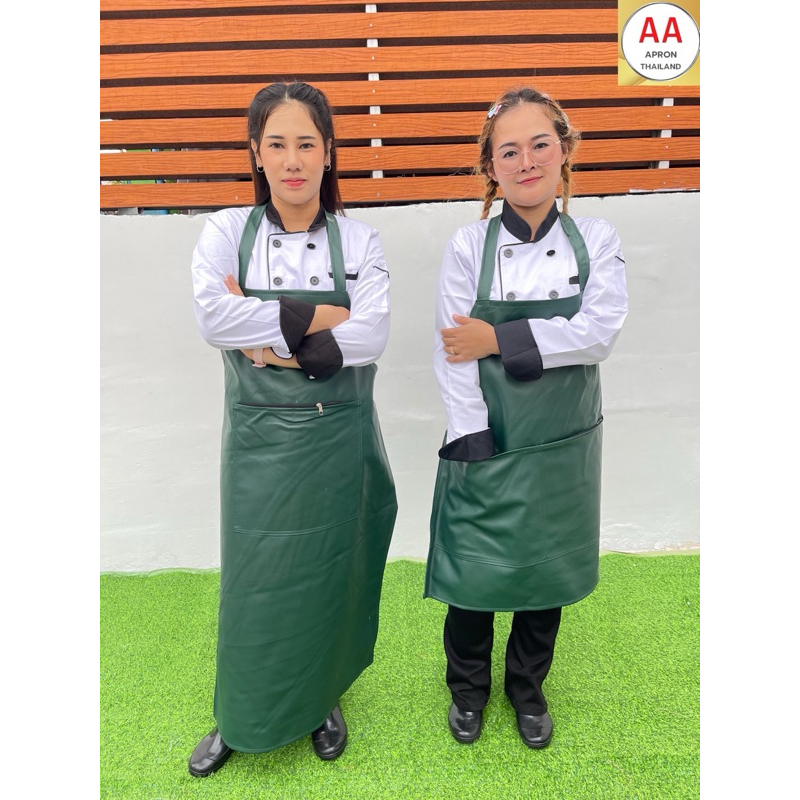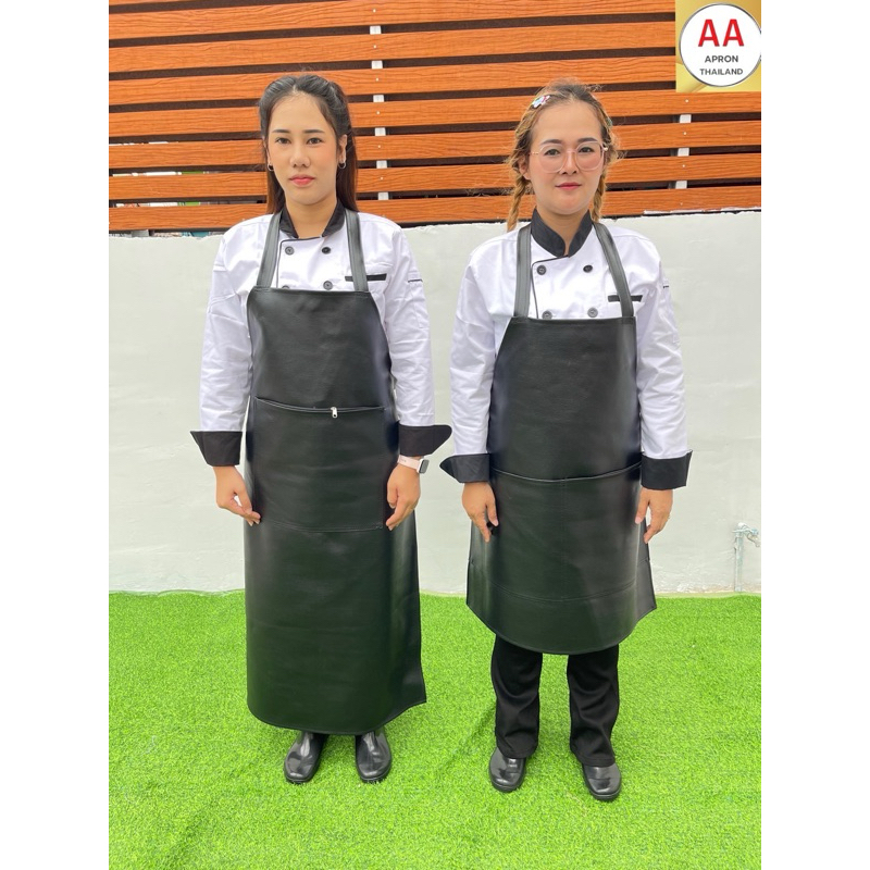 ผ้ากันเปื้อนหนังPVC 2กระเป๋าติดซิป กันน้ำ (พร้อมส่ง)