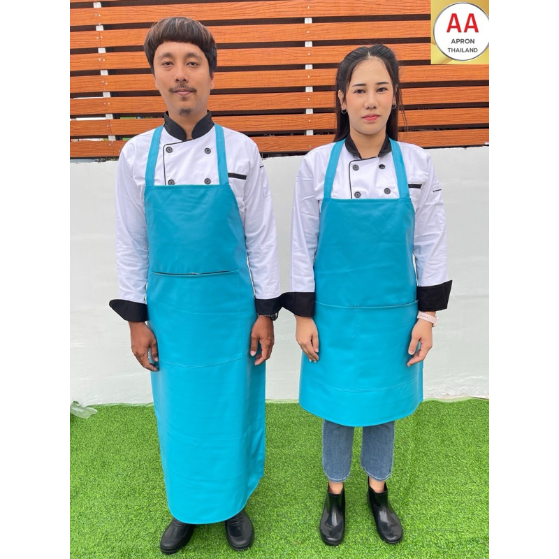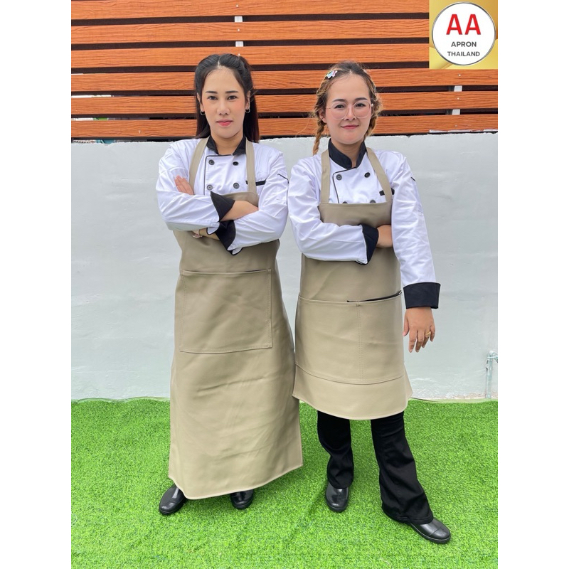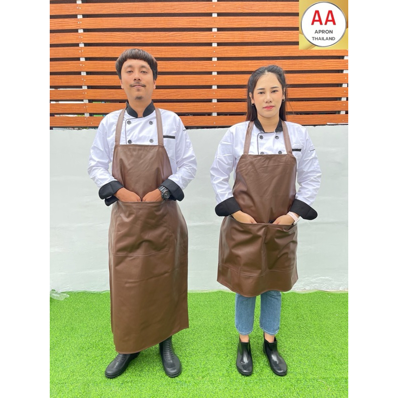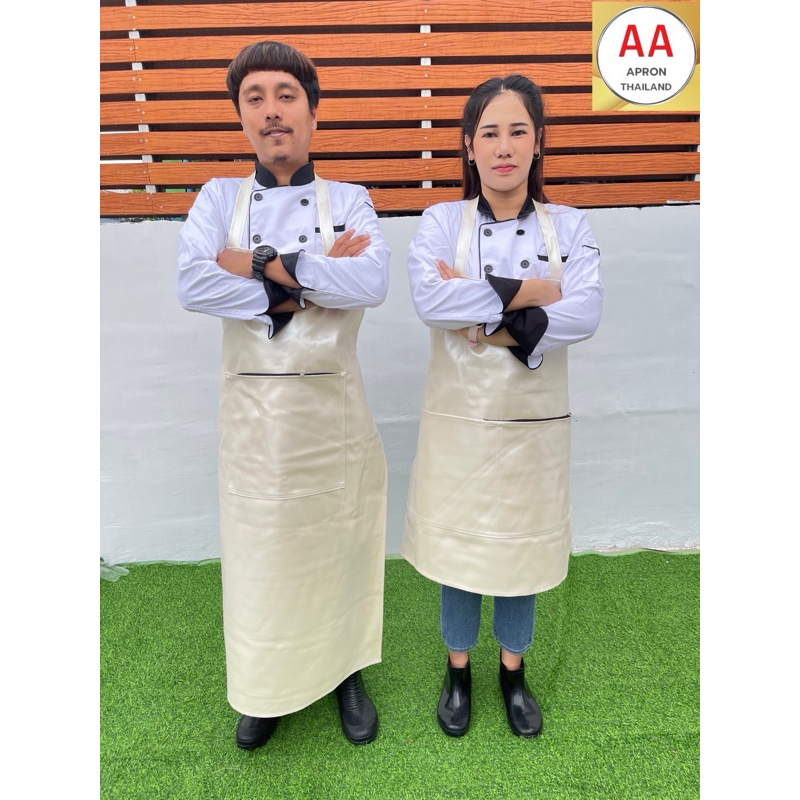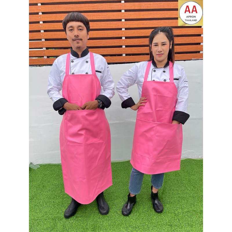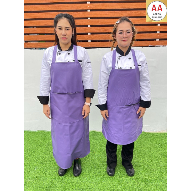 ผ้ากันเปื้อนหนังPVC 2กระเป๋าติดซิป กันน้ำ (พร้อมส่ง)