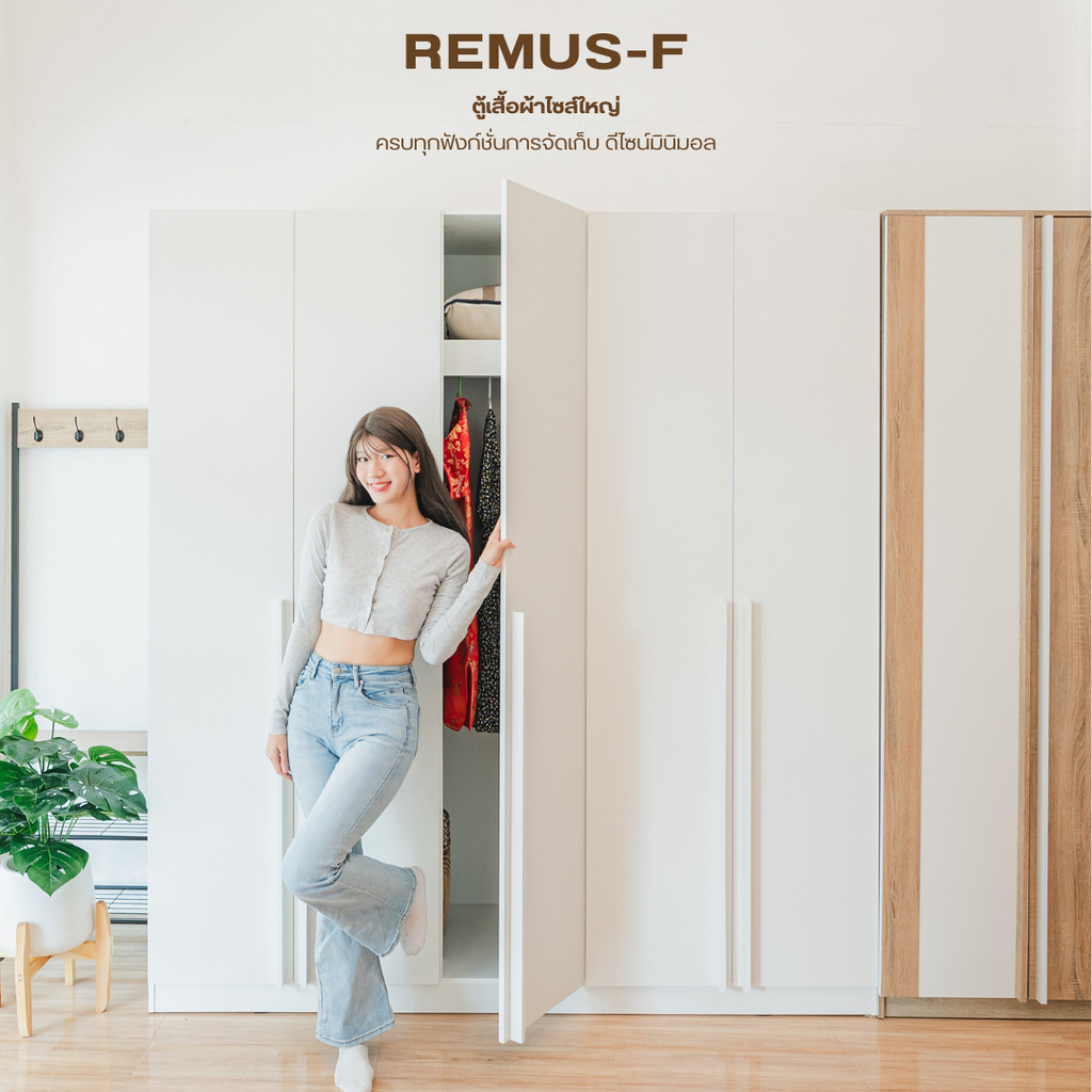 Looms ตู้เสื้อผ้าบานเปิด รุ่น REMUS-F สีขาว (200x56x220 ซม.) แบรนด์ LOOMS
