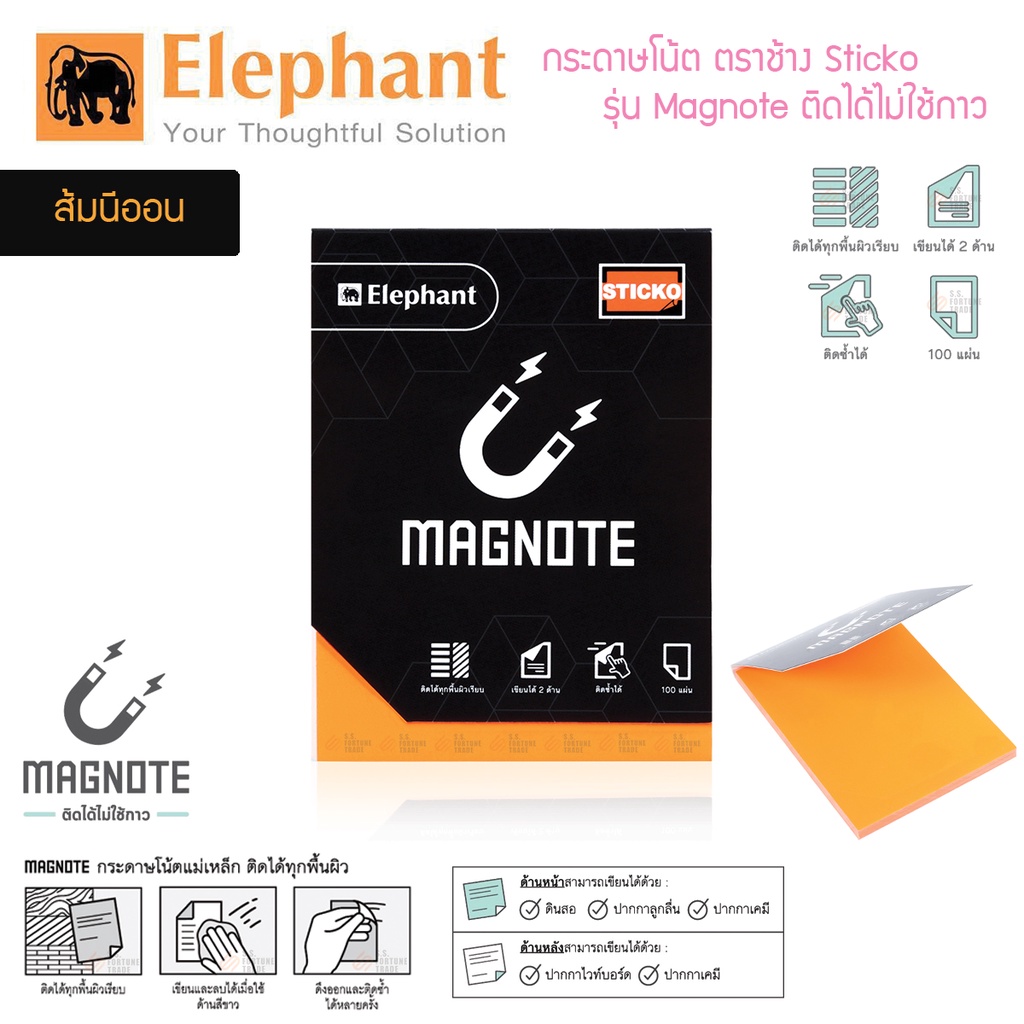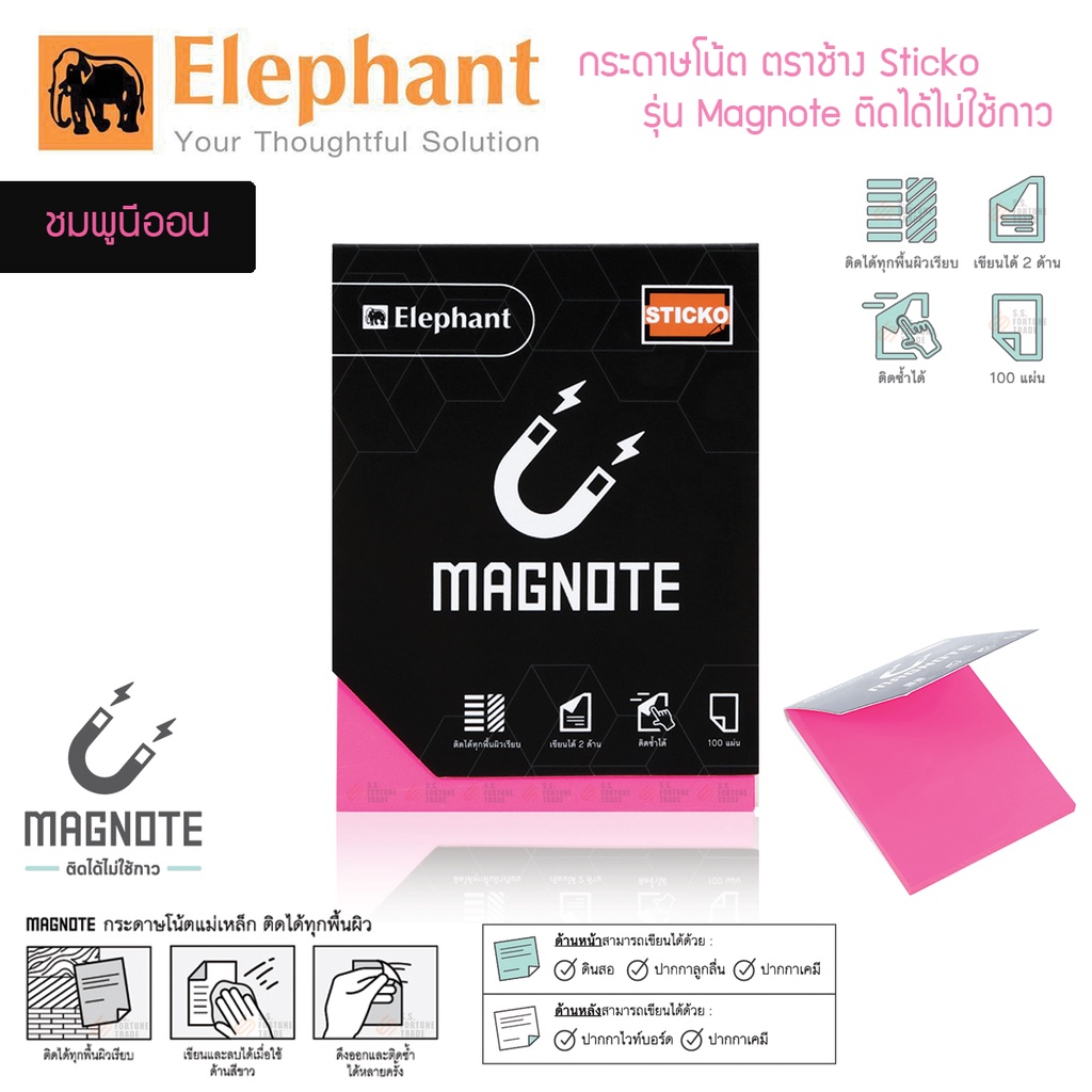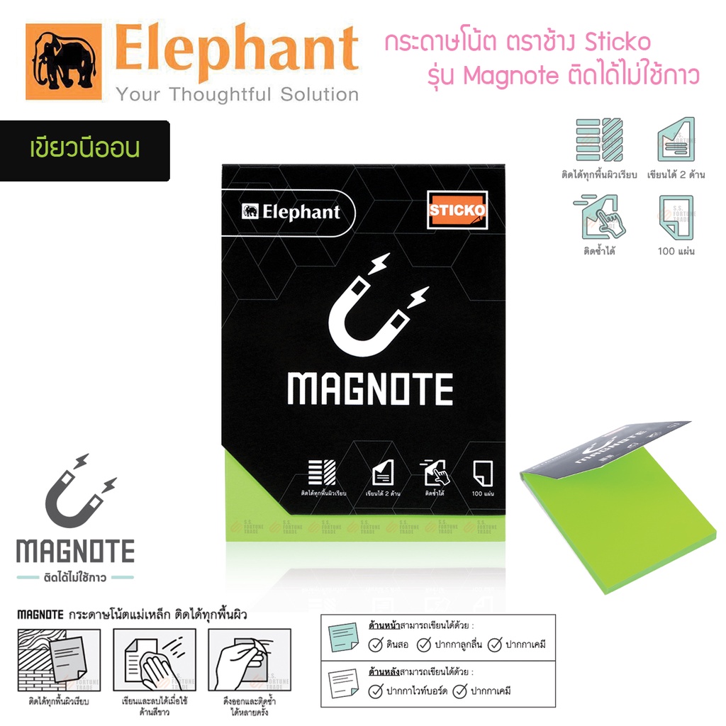 กระดาษโน้ตแม่เหล็ก ตราช้าง รุ่น Magnote พาสเทล นีออน โพสท์อิท กระดาษโน้ต