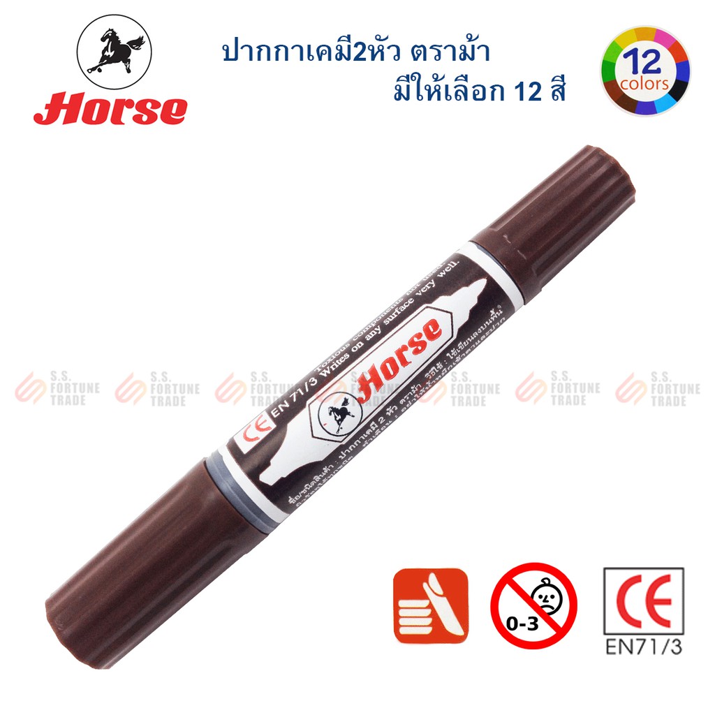 ปากกาเคมี2หัว ตราม้า (กล่อง12ด้าม)