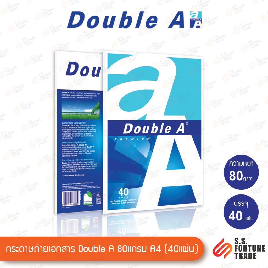 กระดาษถ่ายเอกสาร Double A ขนาด A4 80แกรม 90แกรม 40แผ่น 100แผ่น