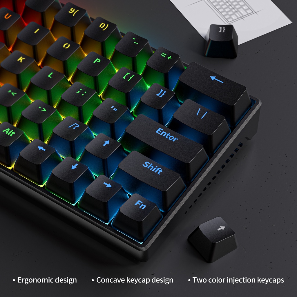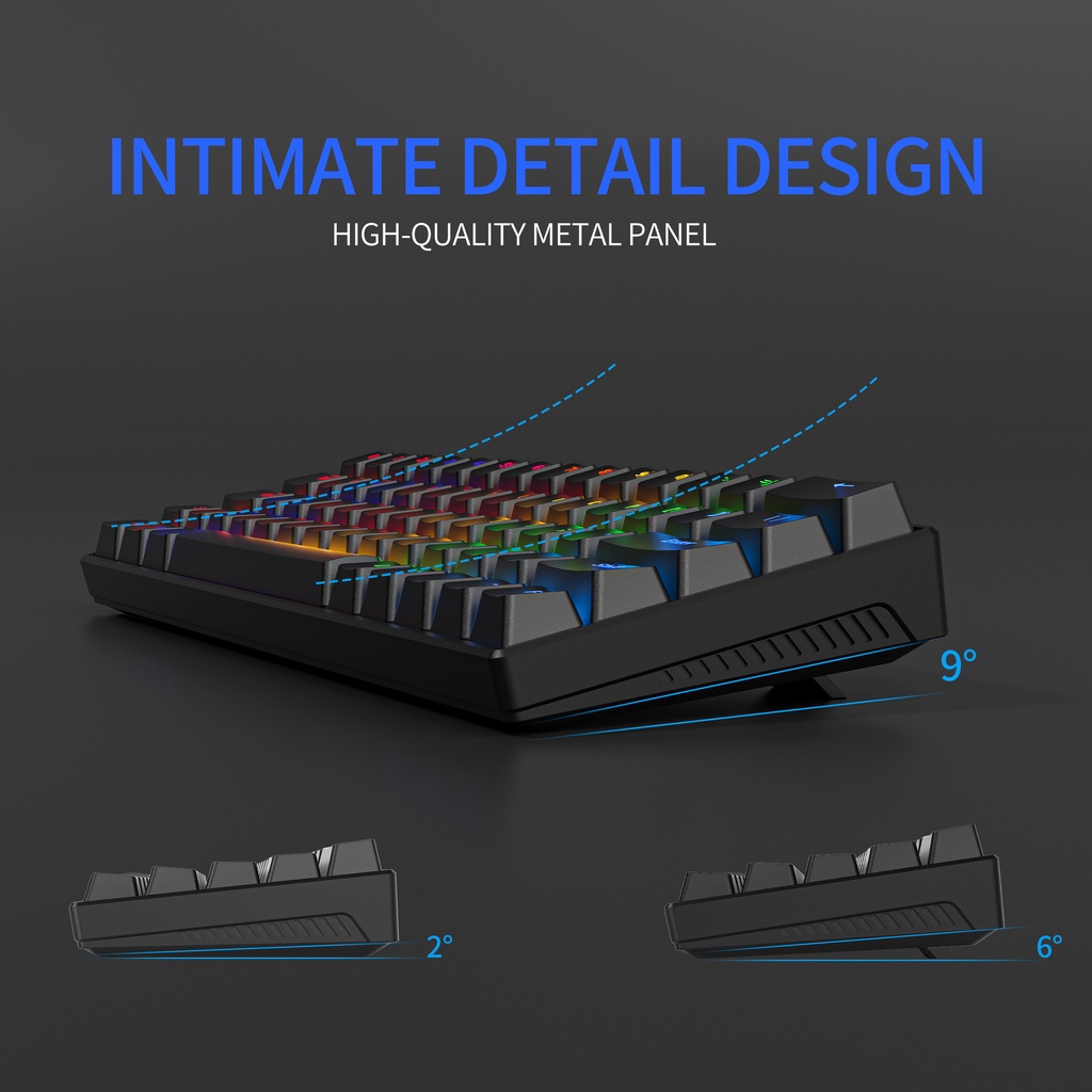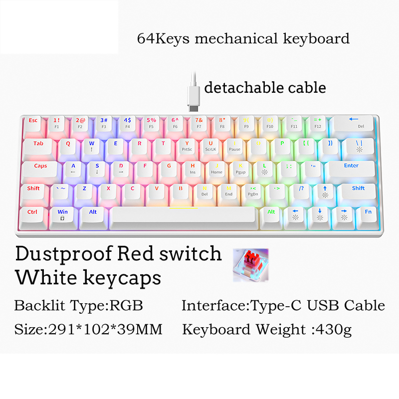 Zifriend คีย์บอร์ดเล่นเกม แบบใช้สาย 63 คีย์ ขนาดเล็ก 60% มีไฟแบ็คไลท์ สีฟ้า สีแดง